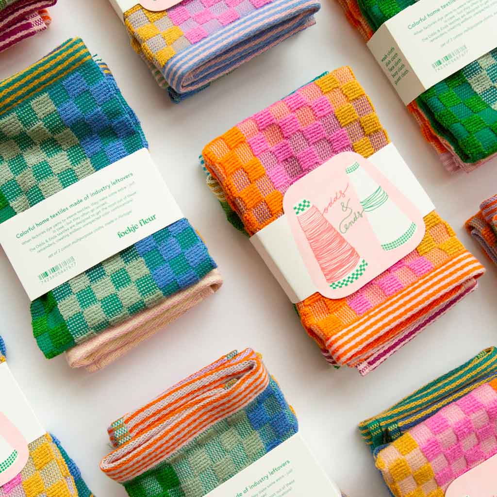 On finit avec les torchons de Foekje Fleur ! Fabriqués à partir de restes de fils teints par l'industrie textile, ces torchons offrent des combinaisons de couleurs infinies, créant ainsi des designs uniques en petites éditions. Rehaussés d'un ourlet rayé signature confectionné sur une machine jacquard, chaque pièce est une œuvre d'art fonctionnelle. Agrémentés d'étiquettes conçues par l'artiste Rachel Sender, ces torchons, produits au Portugal avec des restes de coton, apportent une touche artistique et durable à votre cuisine. Pour plus de praticité, ces torchons polyvalents sont munis d'étiquettes pour les accrocher n'importe où dans votre cuisine !
