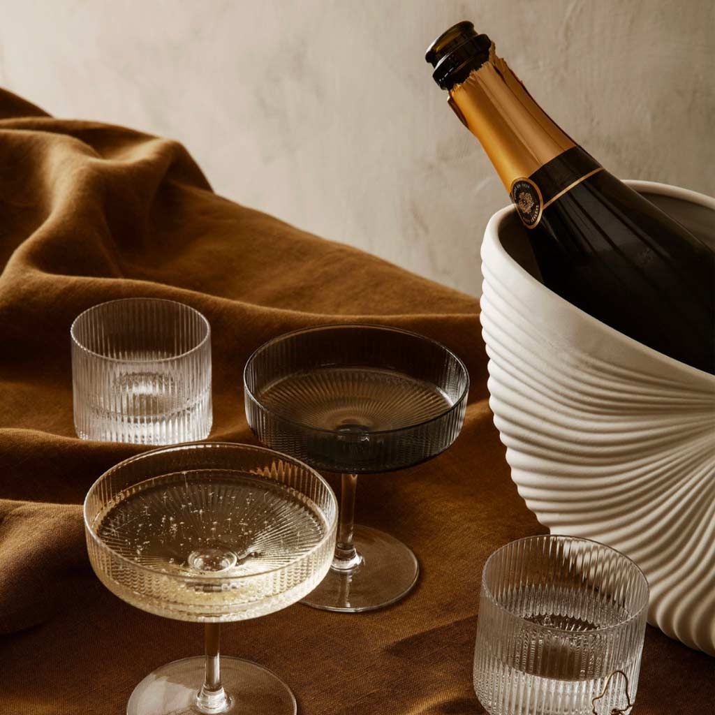 Pour ce premier Mix & Match, je vous propose un combo festif : une jolie carafe en verre Ripple accompagnée de ses magnifiques coupes de champagne en verre.