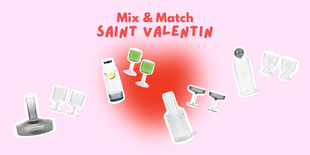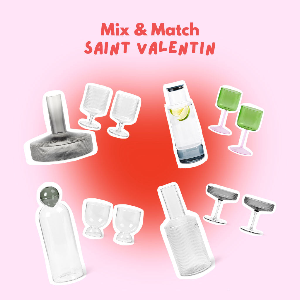 Poursuivons avec le prochain Mix & Match parfait pour une soirée douce et cocooning. La jolie carafe et ses verres Still au design minimaliste, créant une atmosphère simple et apaisante pour votre Saint-Valentin.