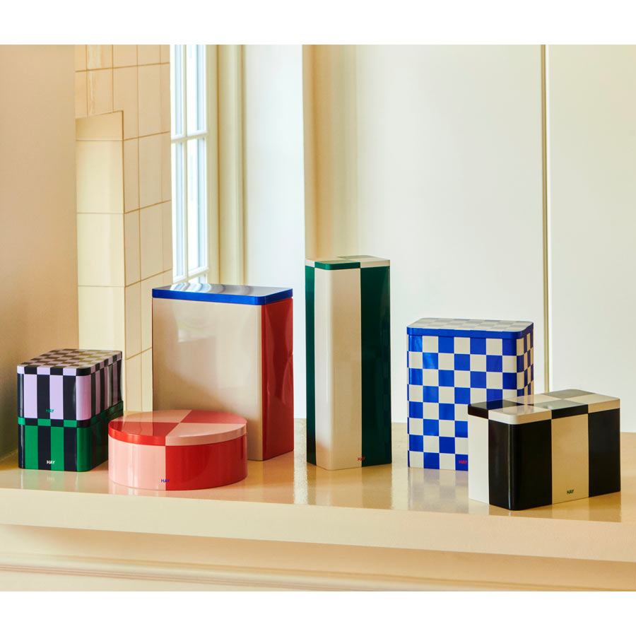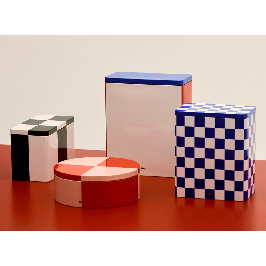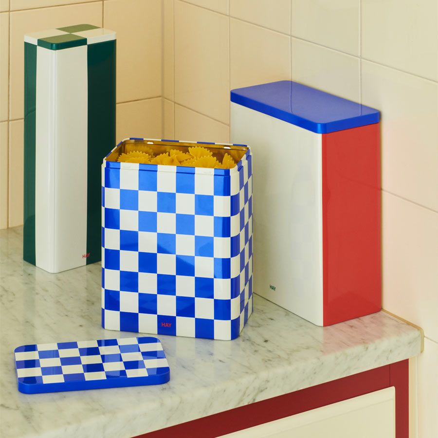 La boîte Tin de chez Hay est parfaite pour organiser vos petits outils de bricolage, pinceaux et aliments secs. Gardez votre intérieur propre et ordonné grâce à ce joli contenant à carreaux bleu et blanc.