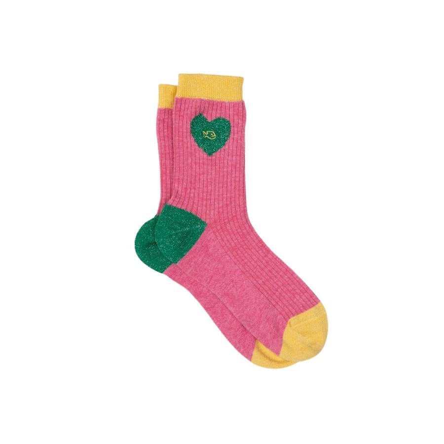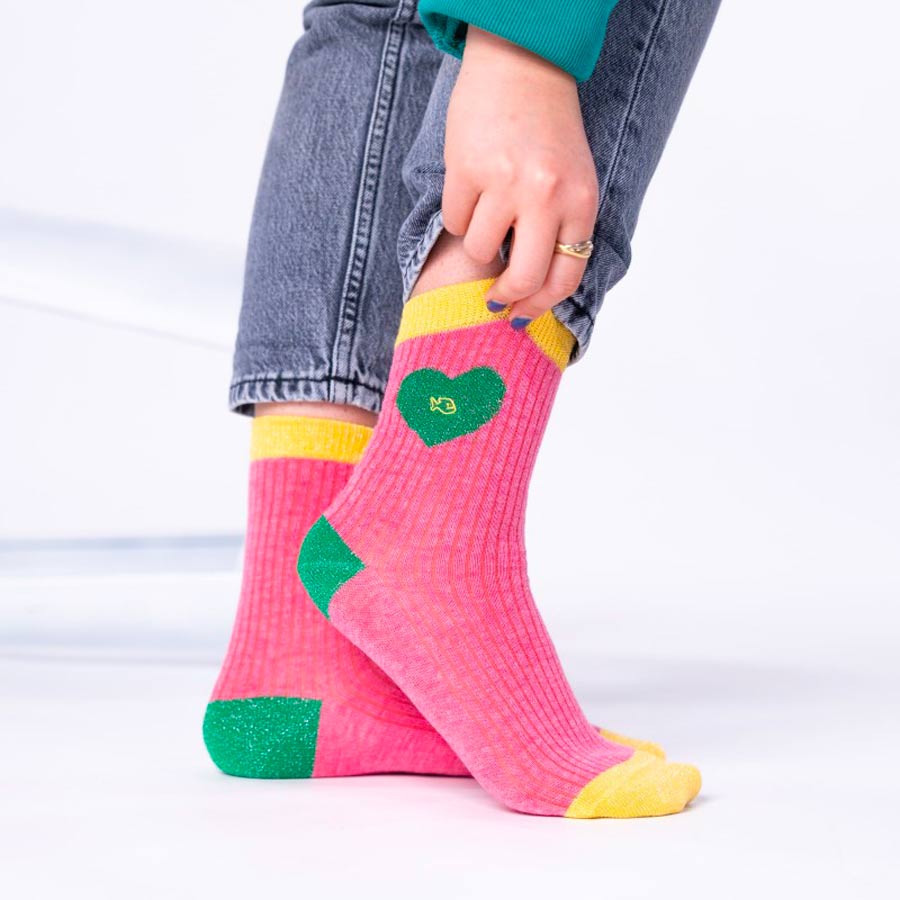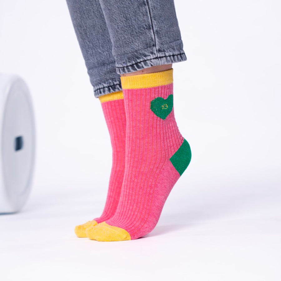 Chaussettes Coeur rose et vert