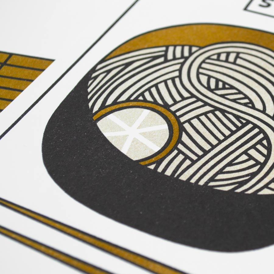 L'utilisation du papier Sunken Pure Rough avec une encre flat gold permet d'obtenir une affiche de haute qualité.