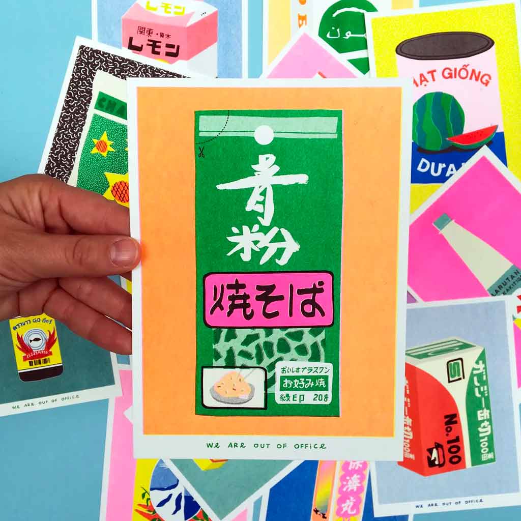 L'affiche tube d'encre riso au format A5 de la collection Japon, imprimée en risographie. Ces jolies affiches We Are Out Of Office, venues des Pays-Bas, ont la particularité d'avoir été créées avec une technique d’impression mécanique que l'on appel la risographie.