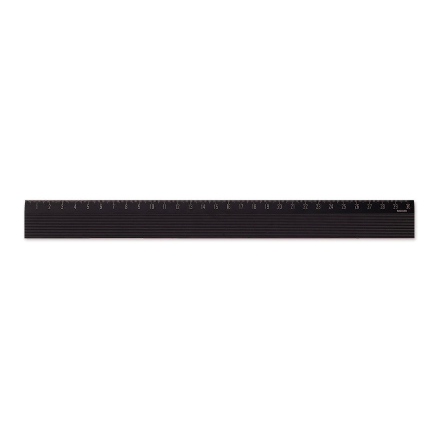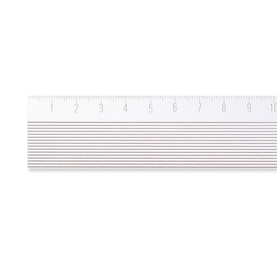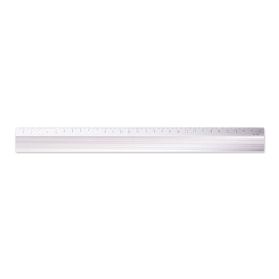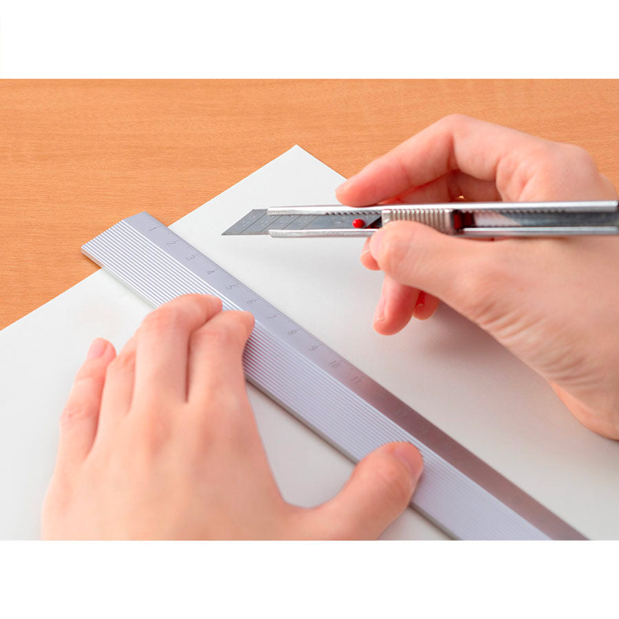 La règle de 30cm de la marque Midori. Cette règle ultra légère est fabriqué en aluminium. La graduation de la règle est gravée au laser, ce qui garanti une grande précision et une tenue. La graduation ne va pas disparaitre lors dans le temps. Cette règle est fabriquée au Japon. La règle peut servir de guide pour découper avec un cuteur.