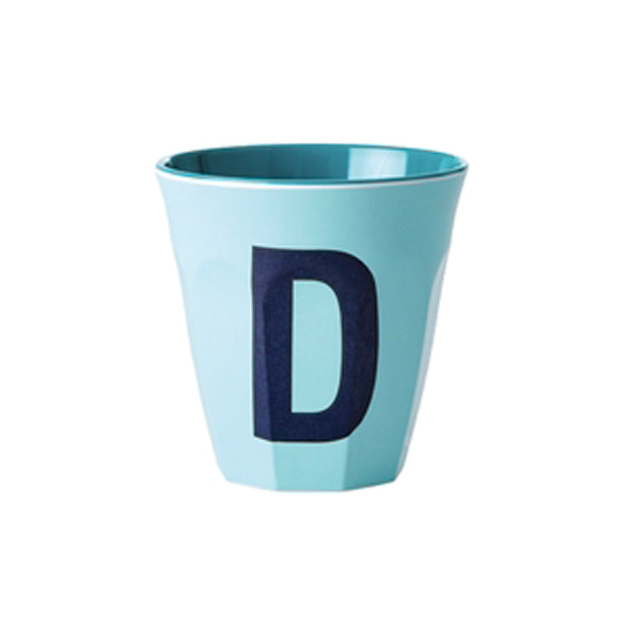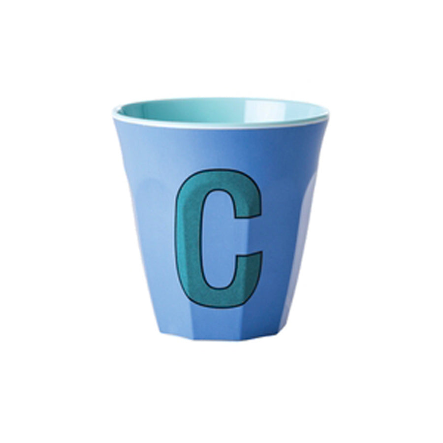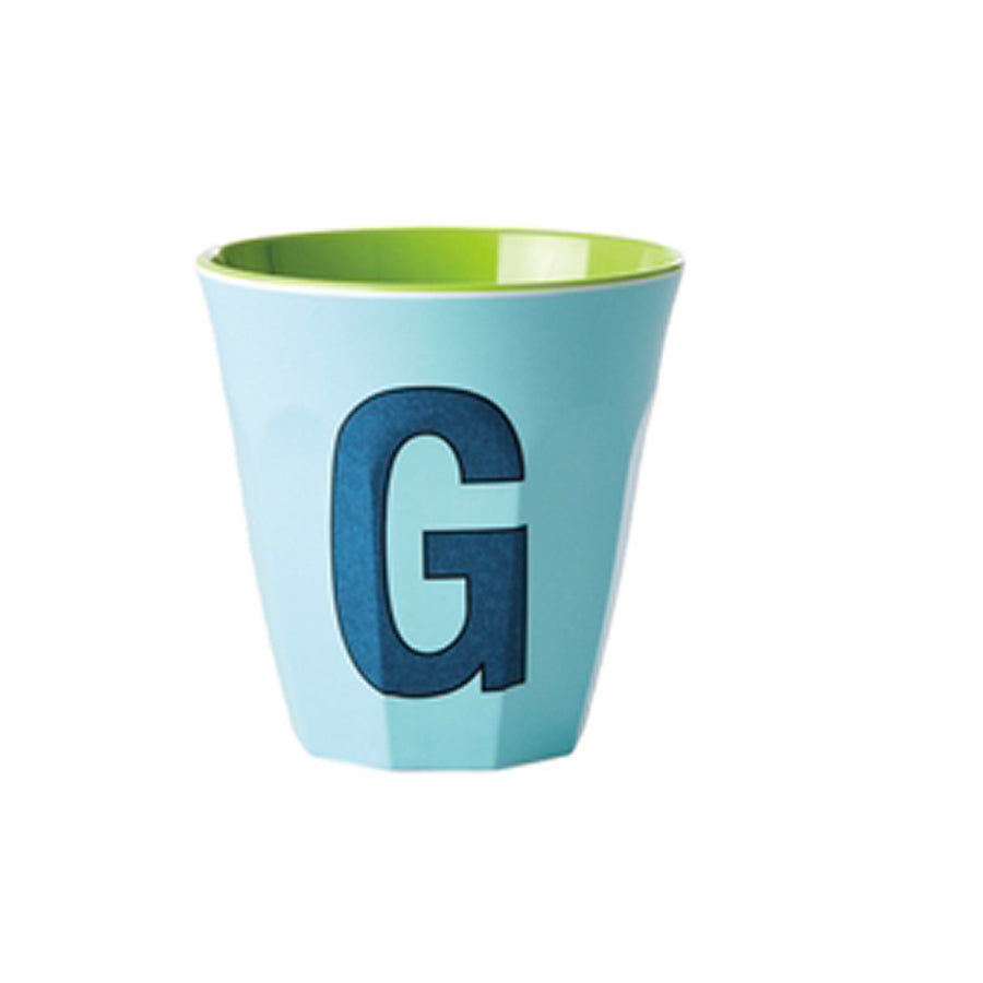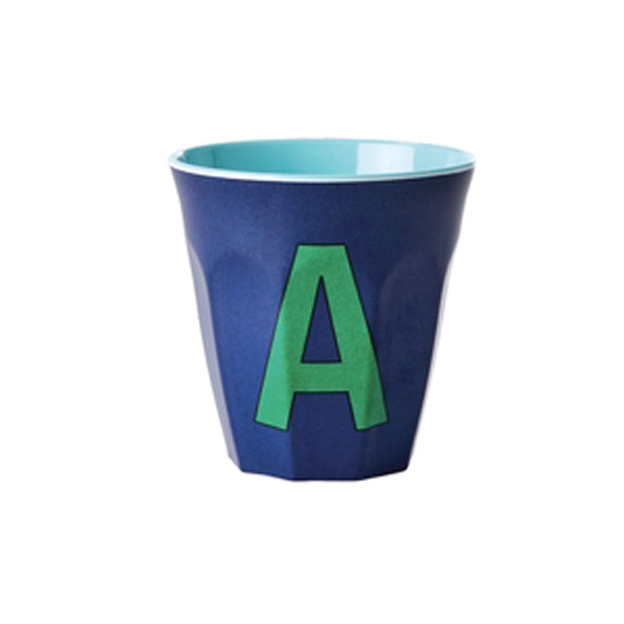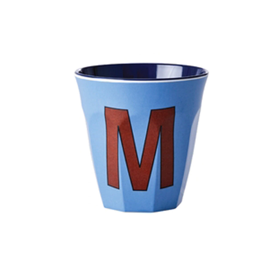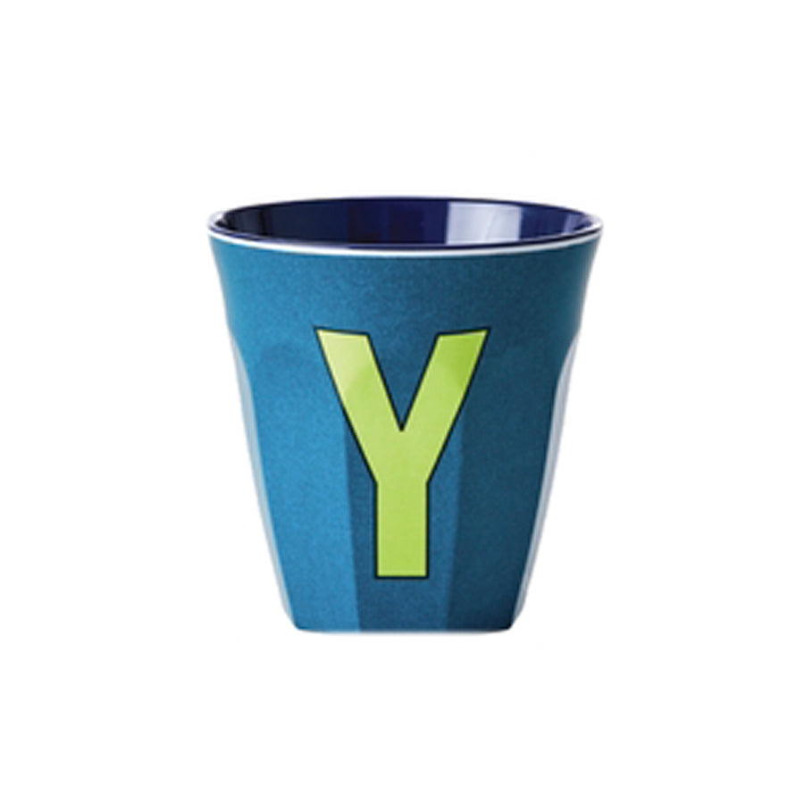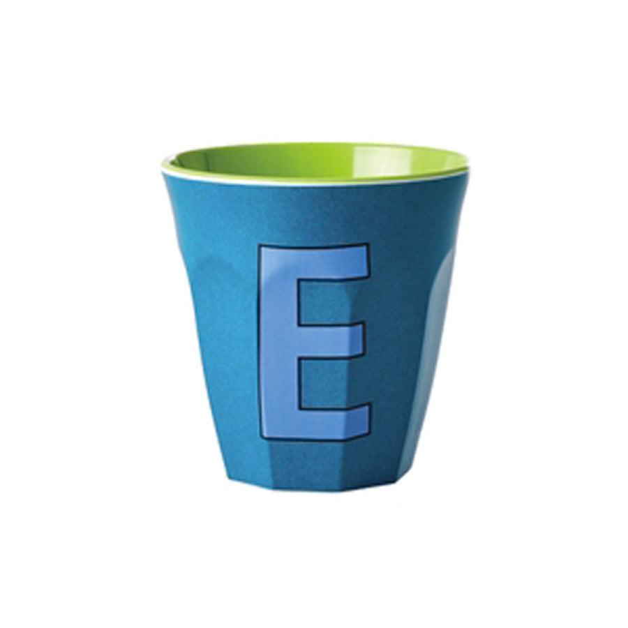 Découvrez la tasse lettre en mélamine bleu uni de chez Rice.