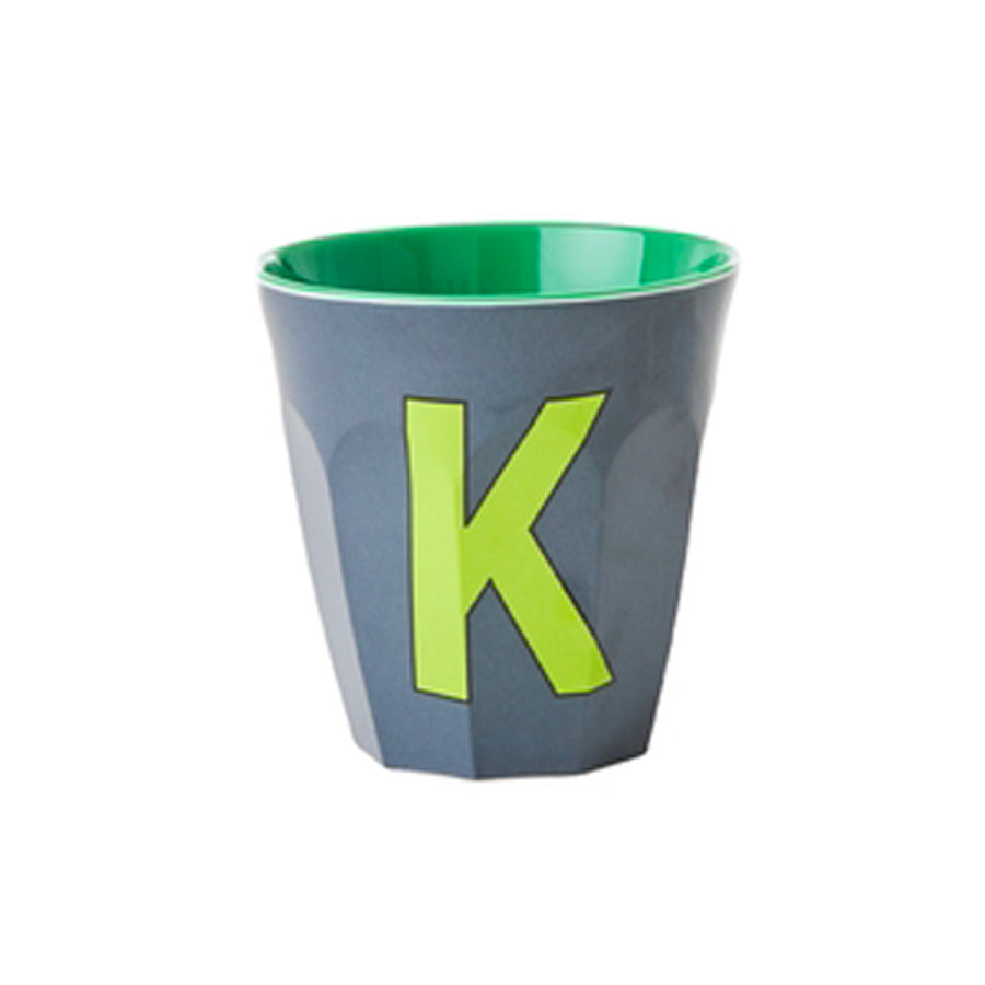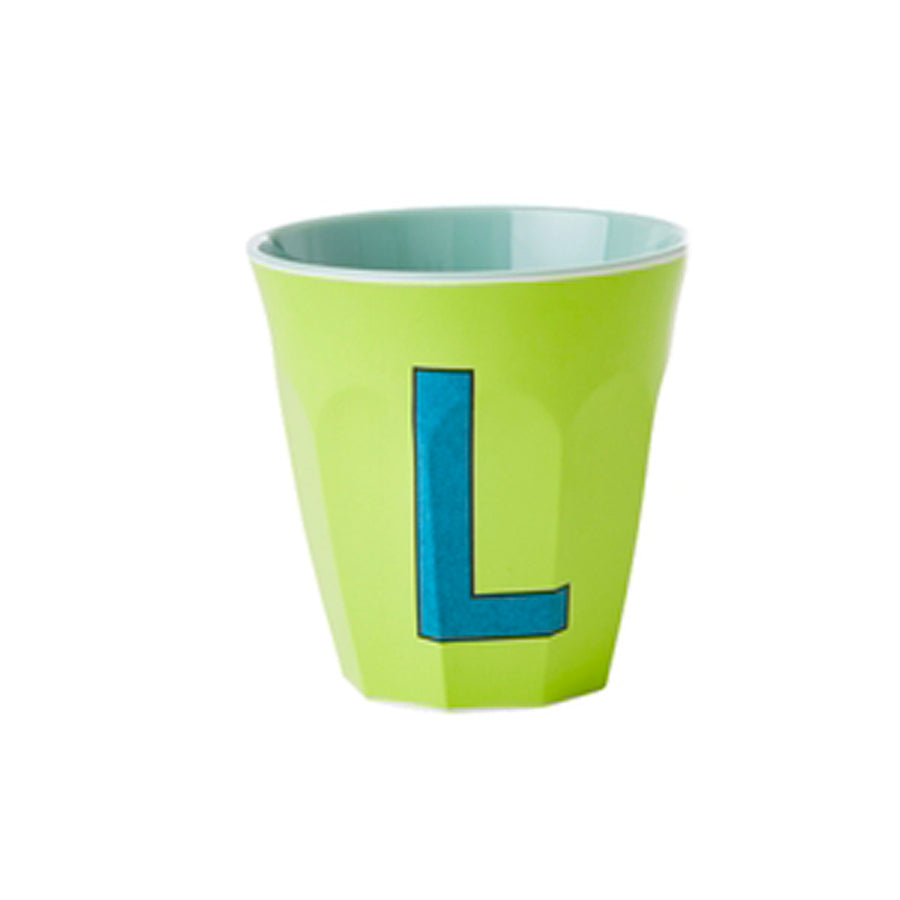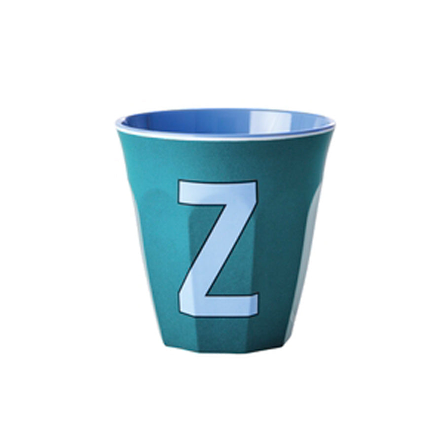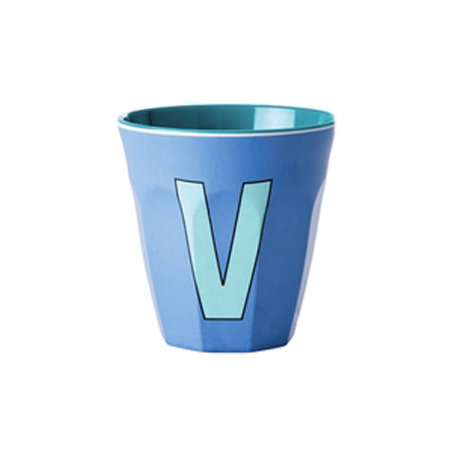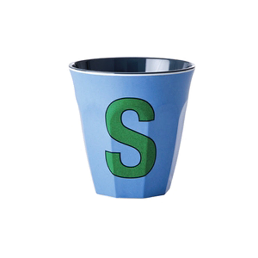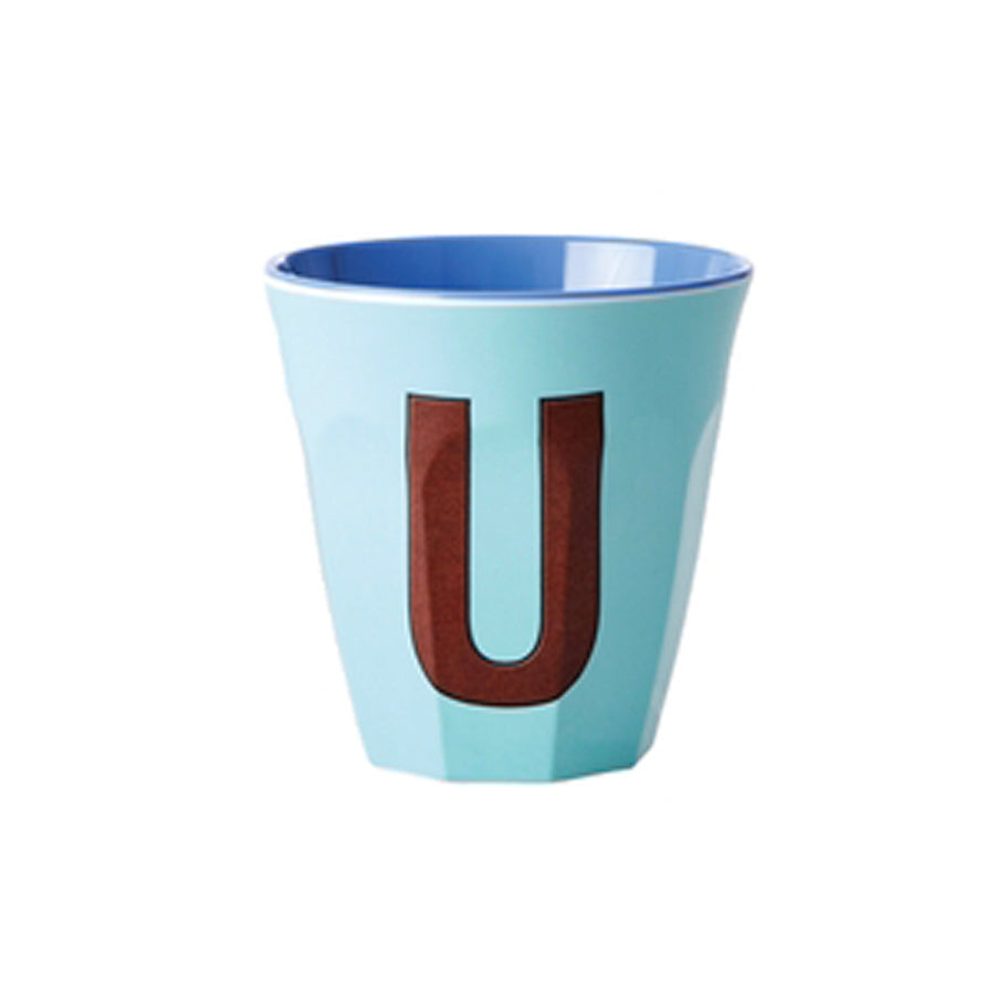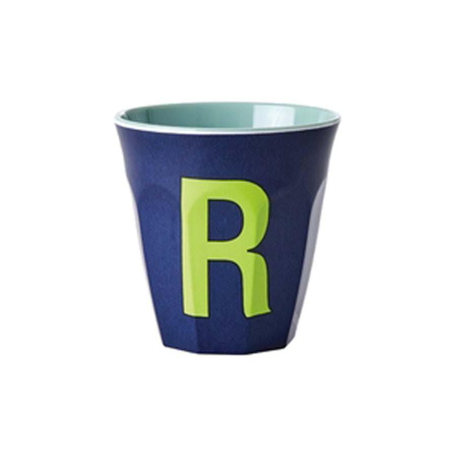 Découvrez la tasse lettre en mélamine bleu uni de chez Rice.