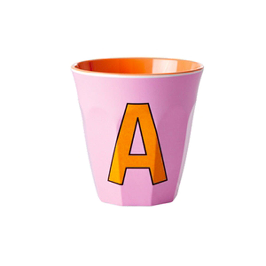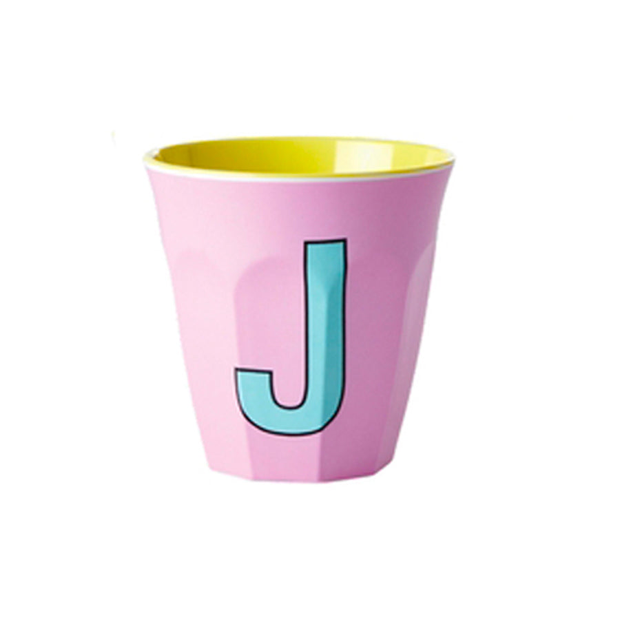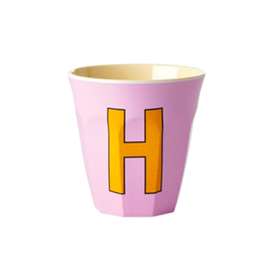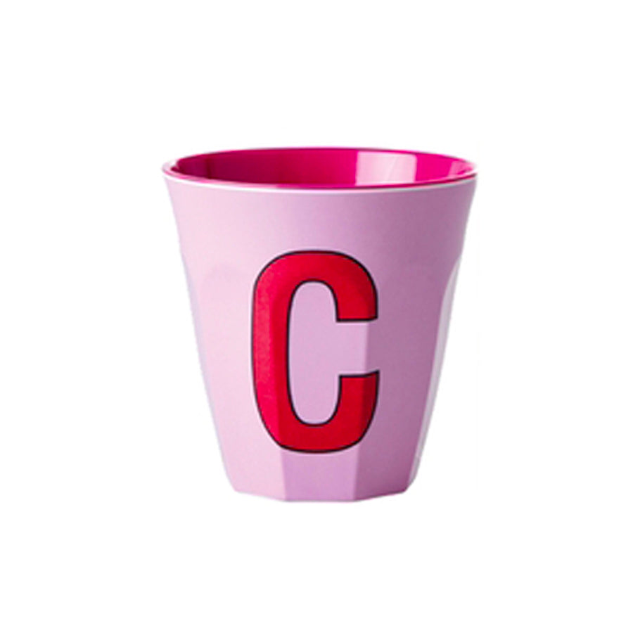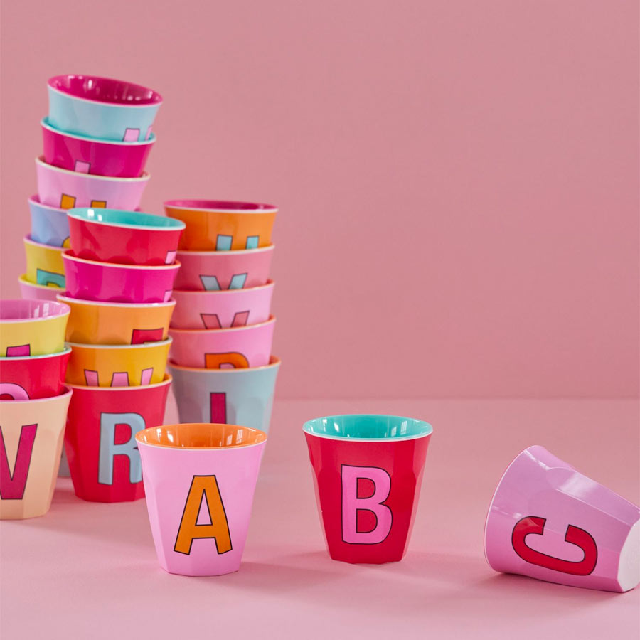 Découvrez la tasse lettre en mélamine rose uni de chez Rice.