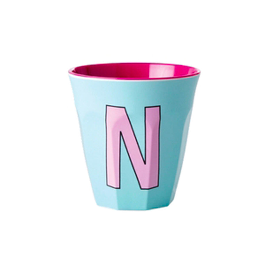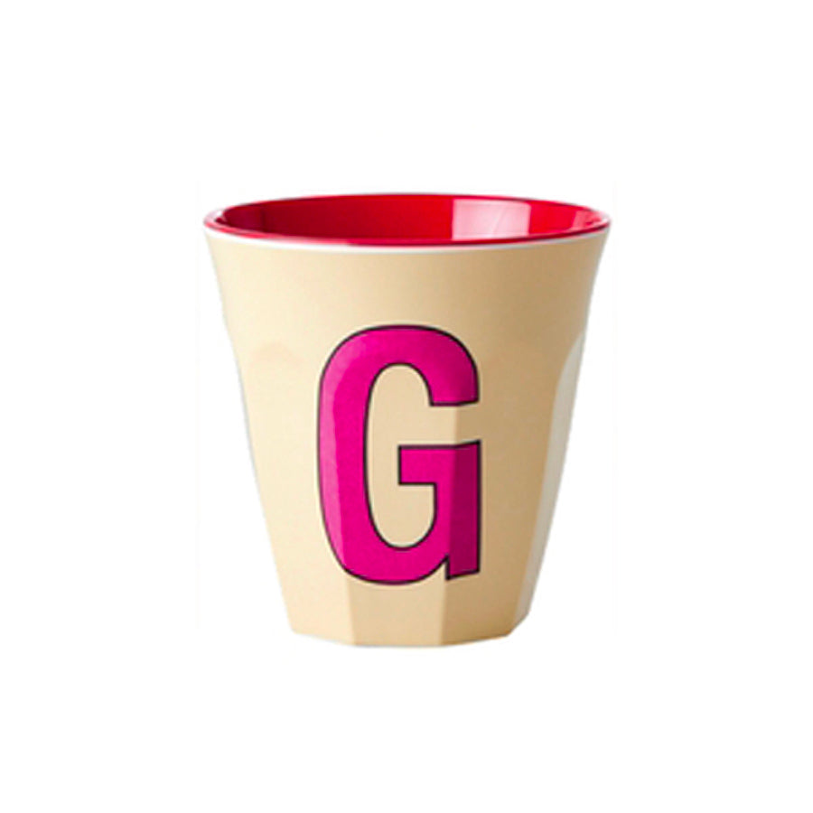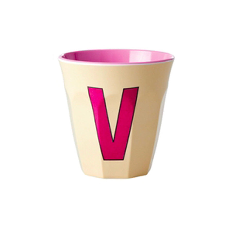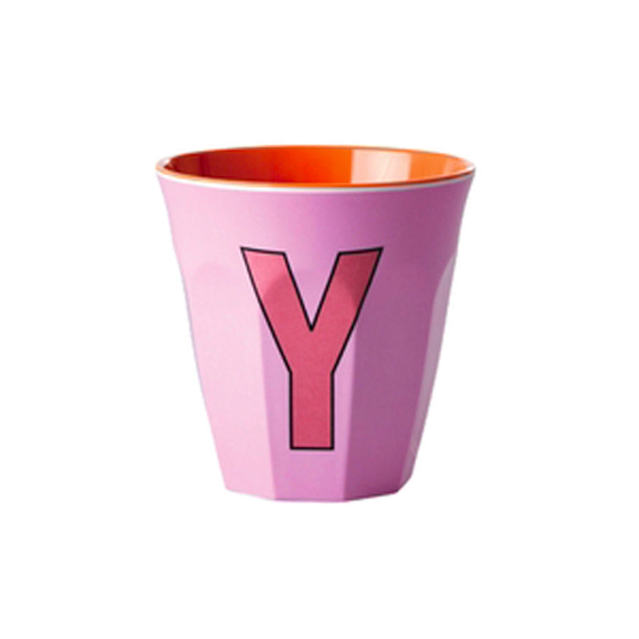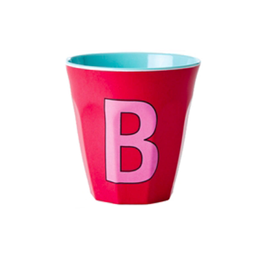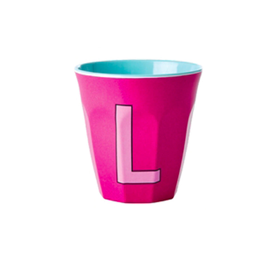 Découvrez la tasse lettre en mélamine rose uni de chez Rice.