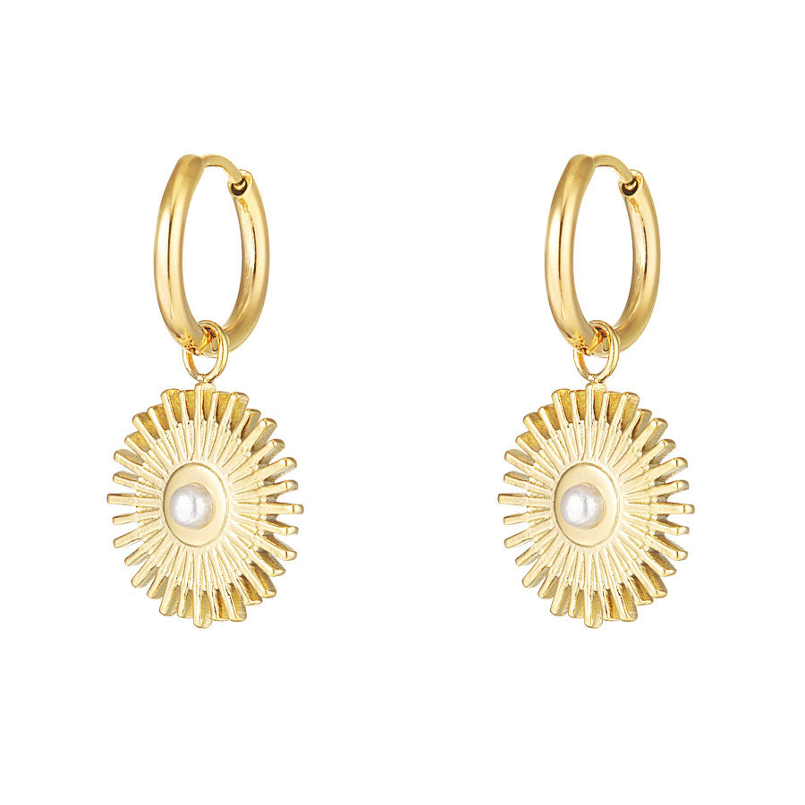 Nous adorons ces boucles d'oreilles soleil or avec perle ! Ces boucles d'oreilles avec breloques sont chics et scintillantes, ce qui complète votre look !