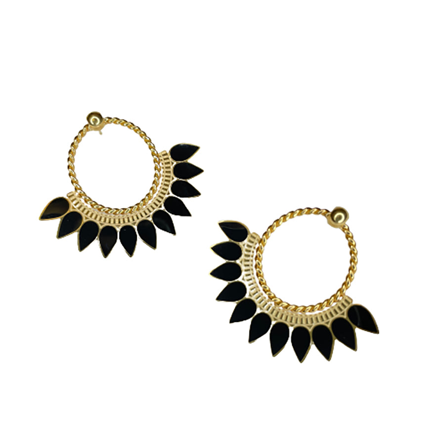 Ces magnifiques boucles d'oreilles Honoka sont conçues en acier inoxydable. Elles sont composées d'un anneau et de petits détails raffinés et travaillés avec soin. Ces boucles feront leur effet avec une tenue casual. Par exemple, avec jean et un haut blanc pour un coté décalé et chic à la fois ! Elles sont disponibles en noir et blanc. Légères, ces boucles d'oreilles conviennent aux oreilles percées.
