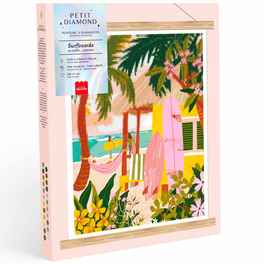Le Petit Diamond Surfboards fait partie d’une collection exclusive de diamond paintings qui vous invite à voyager à travers des paysages inspirants. Découvrez d’autres modèles comme :