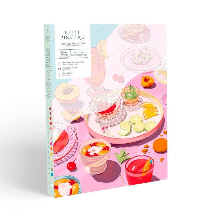 Le kit de peinture au numéro Summer Dreams est né de la collaboration entre l'illustratrice Sun Lee et la petite épicerie. Ce set de peinture à faire soi-même est composé d'une illustration numérotée, de pots de peintures et de deux pinceaux.