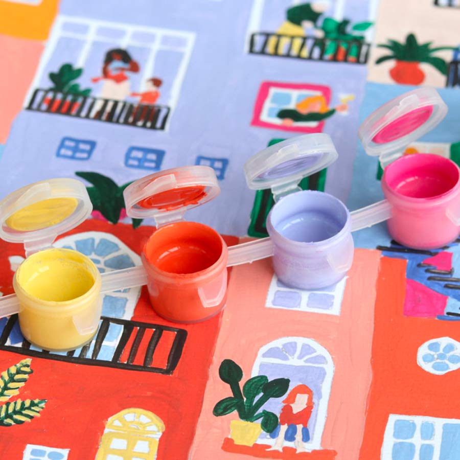 Le kit de peinture au numéro Home Together est né de la collaboration entre l'illustratrice Monamai et la petite épicerie. Ce set de peinture à faire soi-même est composé d'une illustration numérotée, de pots de peintures et de deux pinceaux.
