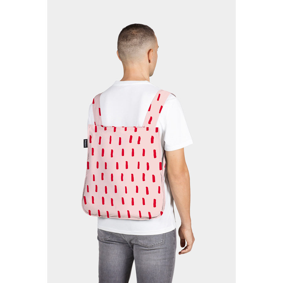 Ce sac convertible peut se ranger facilement en se pliant dans une pochette intégrée à l'intérieur. Celle-ci permet de ranger ses petits objets lorsque le sac est utilisé ou bien de s'en servir comme pochette qui va accueillir le sac lorsqu'il doit être fermé et rangé.