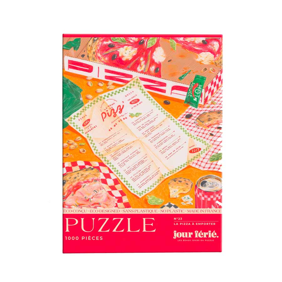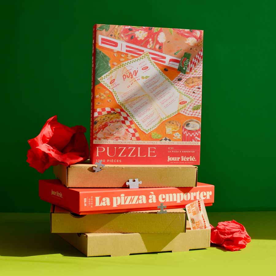 Le puzzle "Pizza à emporter" de la marque Jour Férié est un incontournable pour les amateurs de puzzles. Avec ses 1000 pièces en papier et carton recyclés, ce puzzle de niveau intermédiaire vous plonge dans une scène colorée qui évoque une soirée pizza entre amis ou en famille.