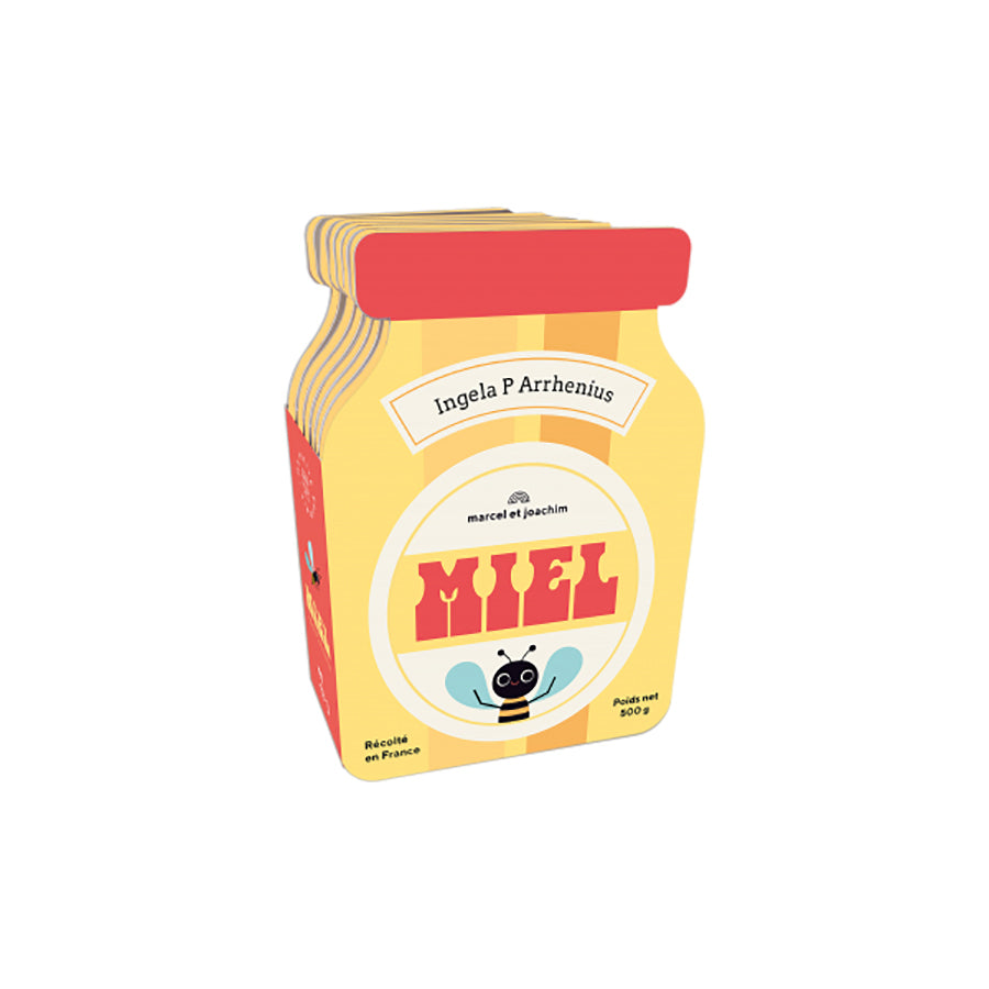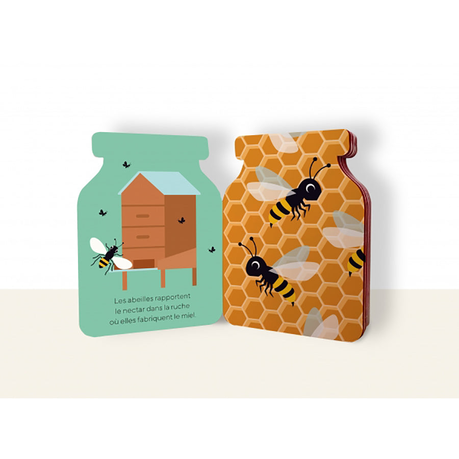Le livre le miel avec les jolies illustrations édité par Marcel et Joachim, la maison d'édition indépendante pour la jeunesse. Un livre fabriqué avec d'épaisses pages en mousse en forme de pot de miel, pour découvrir ce nectar doré aux mille vertus. Un livre documentaire coloré dédié aux tout-petits pour qu'ils puissent découvrir ce qu'ils mangent.