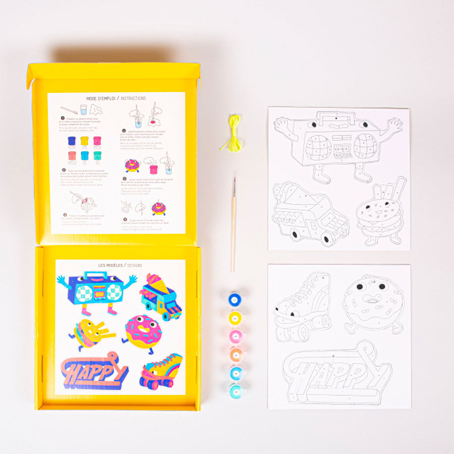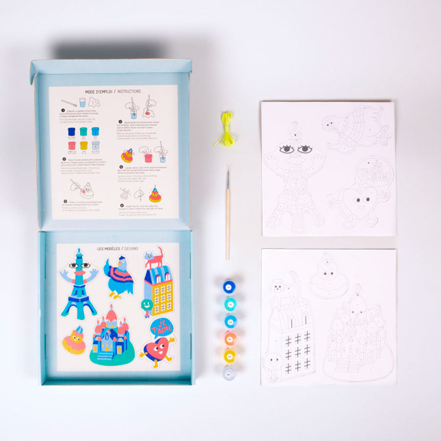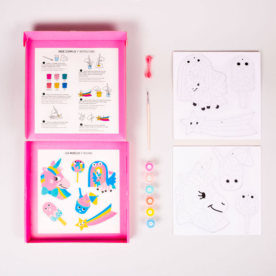 Découvrez les kits peinture de chez OMY. Ce coffret permettra d'initier vos enfants aux loisirs créatifs à partir de 7 ans. Ils créeront de belles décorations tout en étant guidés à chaque étape. Dans la paint box, vous retrouverez tout le nécessaire pour réaliser les décorations.