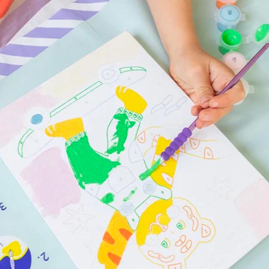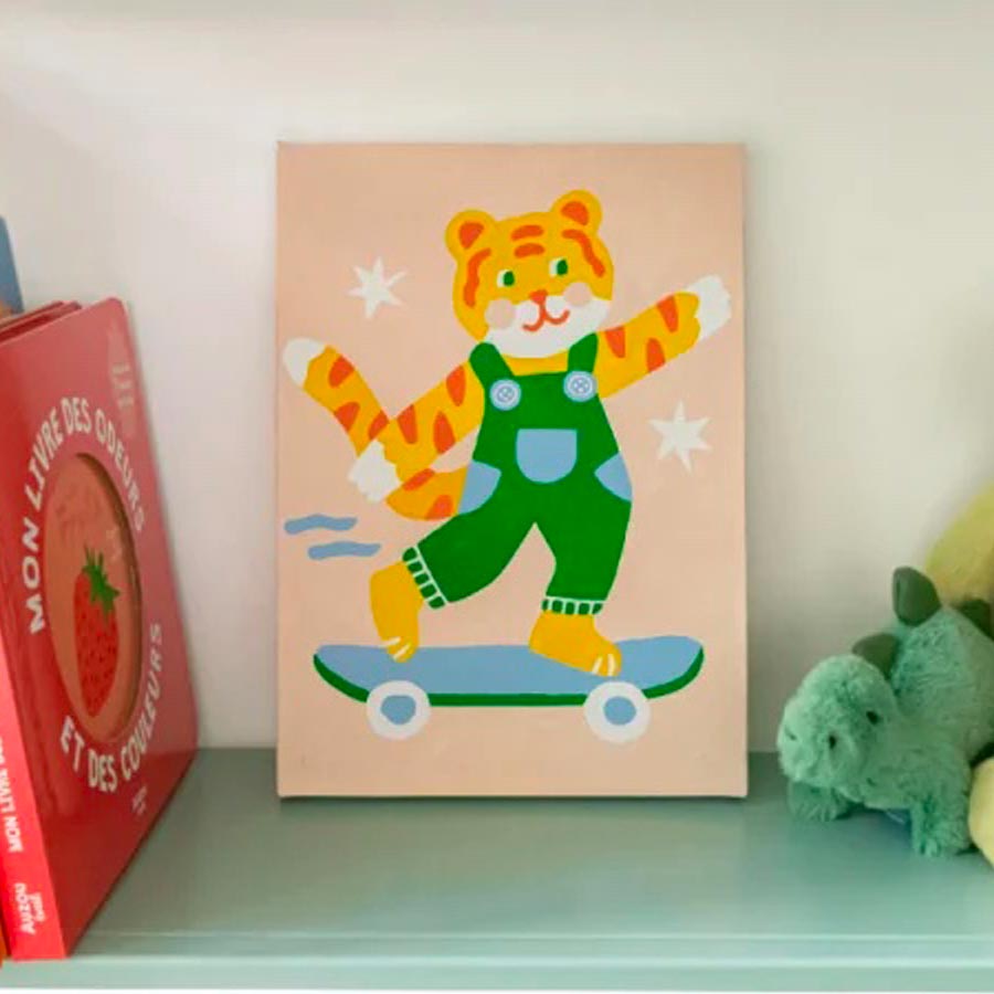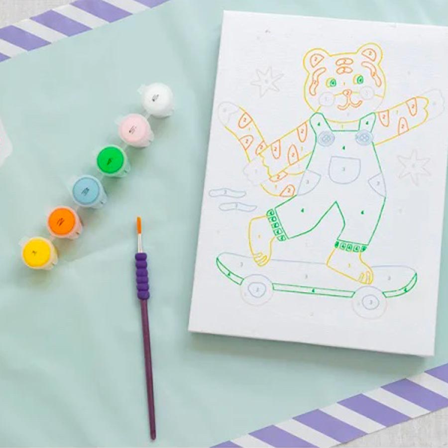 Le kit de peinture au numéro pour enfants Titi Skate de La Petite Épicerie. Ce set de peinture à faire soi-même est composé d'une toile numérotée, de pots de peintures et d'un pinceau ergonomique.