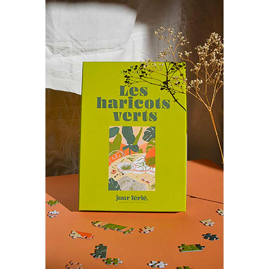 Le joli puzzle design les haricots verts de la marque française Jour fériéCe puzzle, conçu en France et réalisé en papier recyclé ou issu des forêts responsable. Il est composé de 1000 pièces, parfait pour les petits comme les grands.