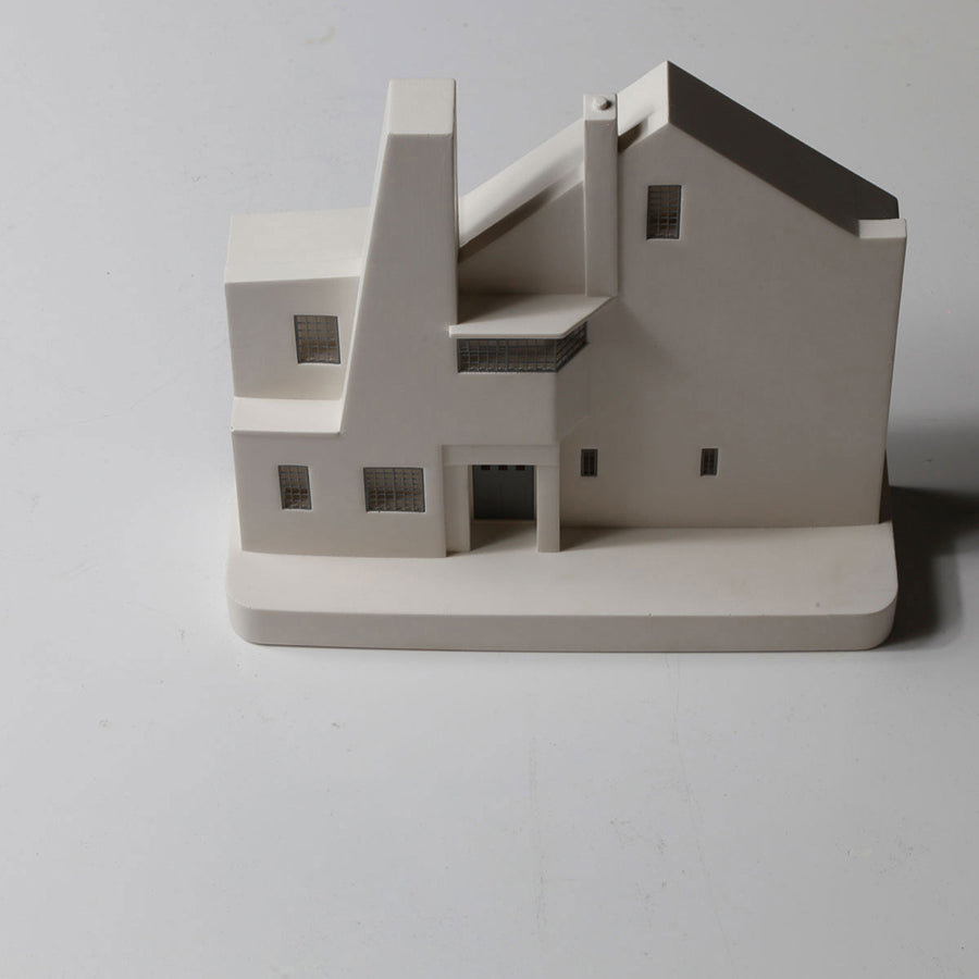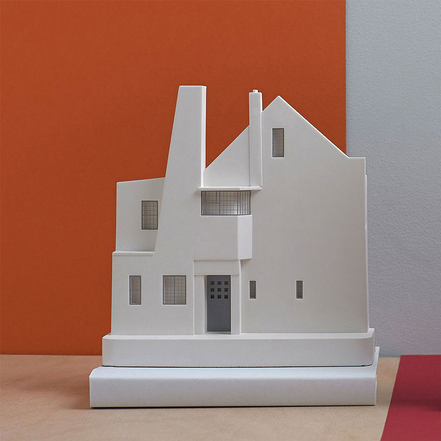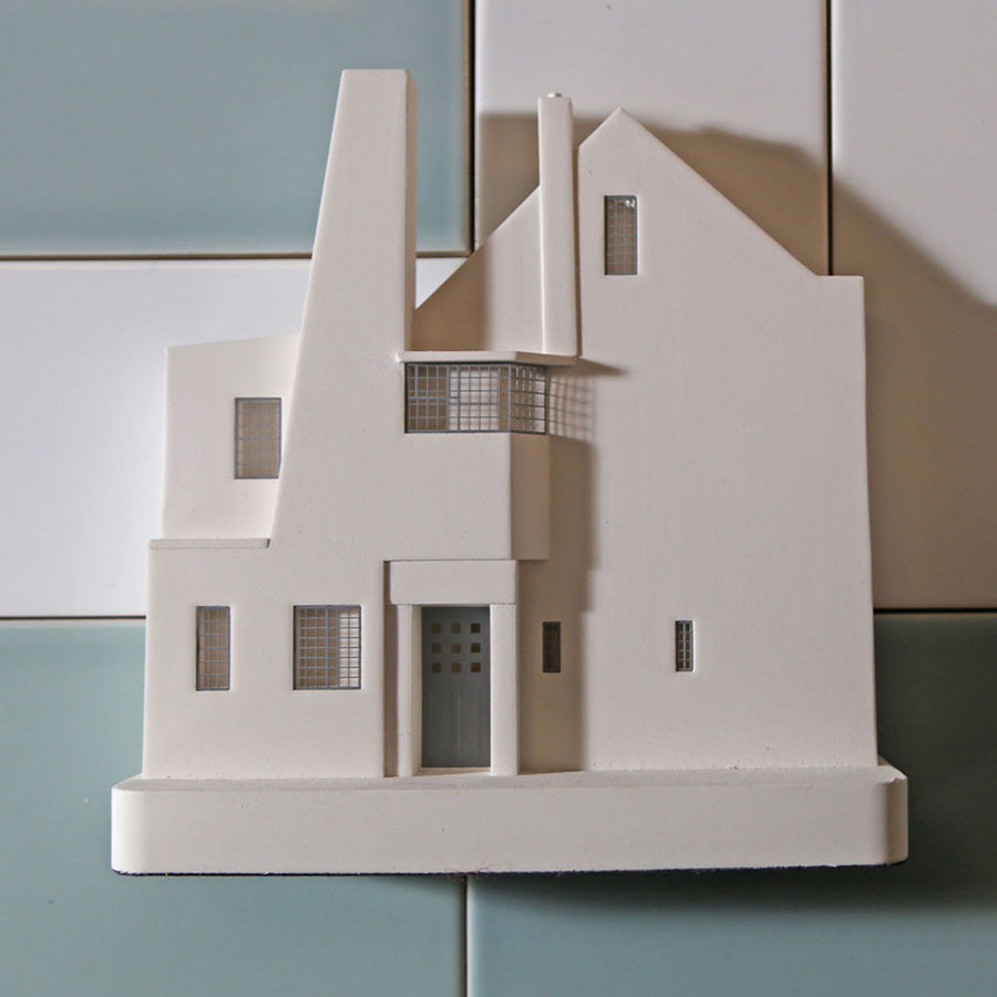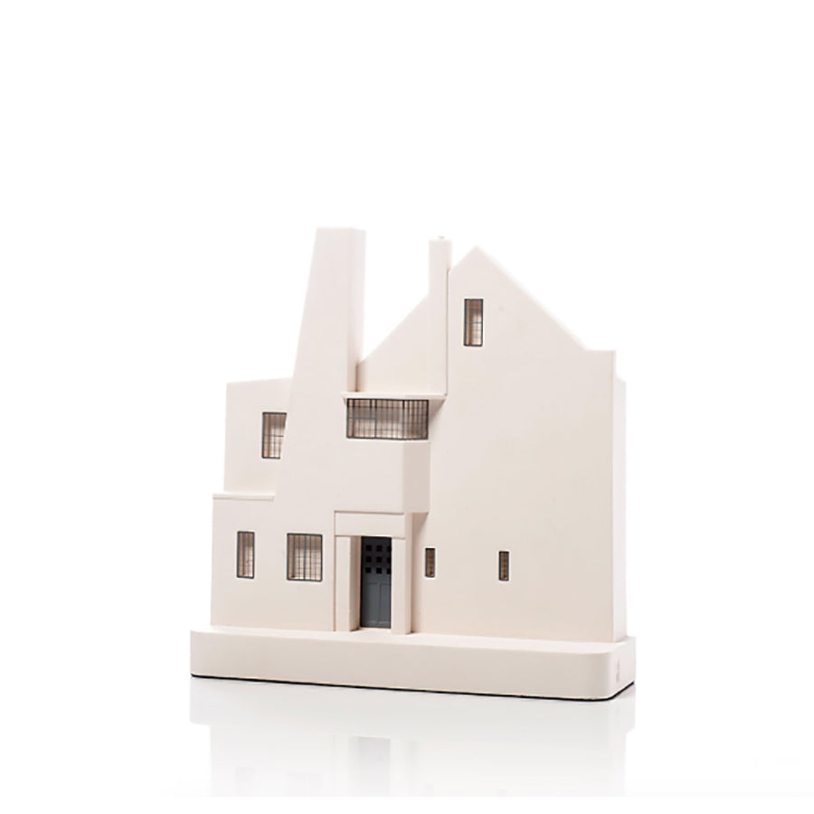 Cette sculpture décorative représente la maison écossaise Hill House. Elle est fabriquée à la main et conçue en plâtre et en métal pour les petits détails. Véritable objet de décoration sa taille permet d'être intégré facilement à votre intérieur. Ce bâtiment peut être posé sur une étagère ou accrocher au mur. Chaque exemplaire est signé et numéroté par l'artiste.