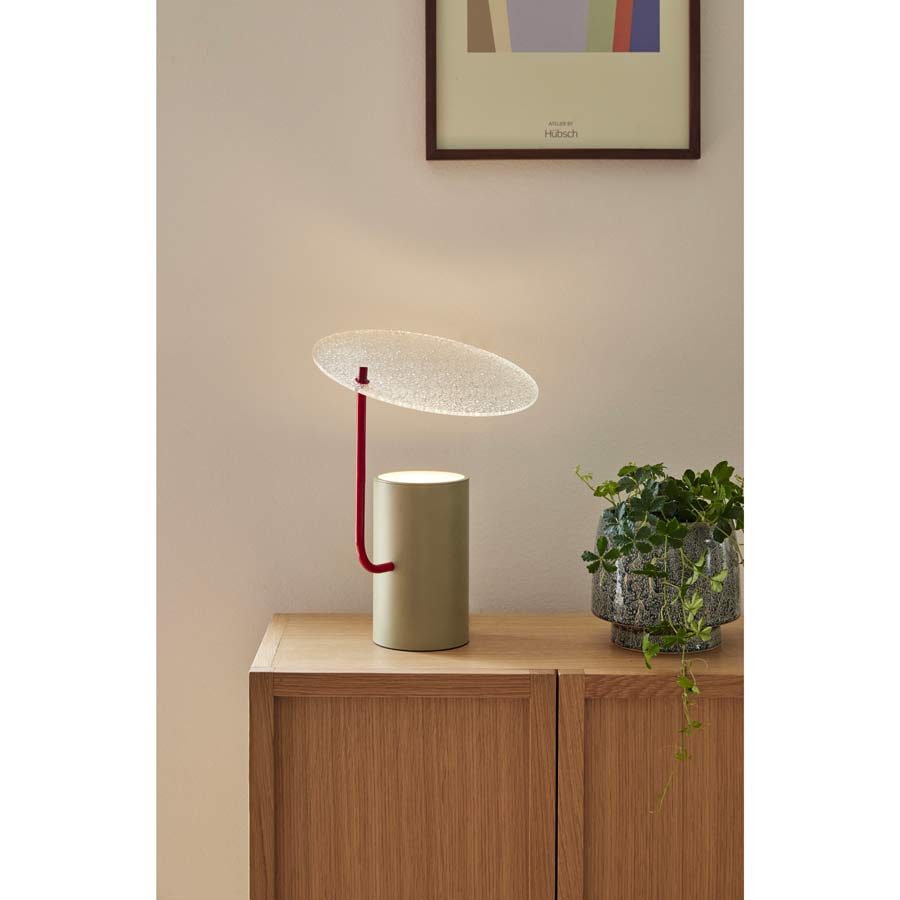 Lampe de table Disc kaki et rouge