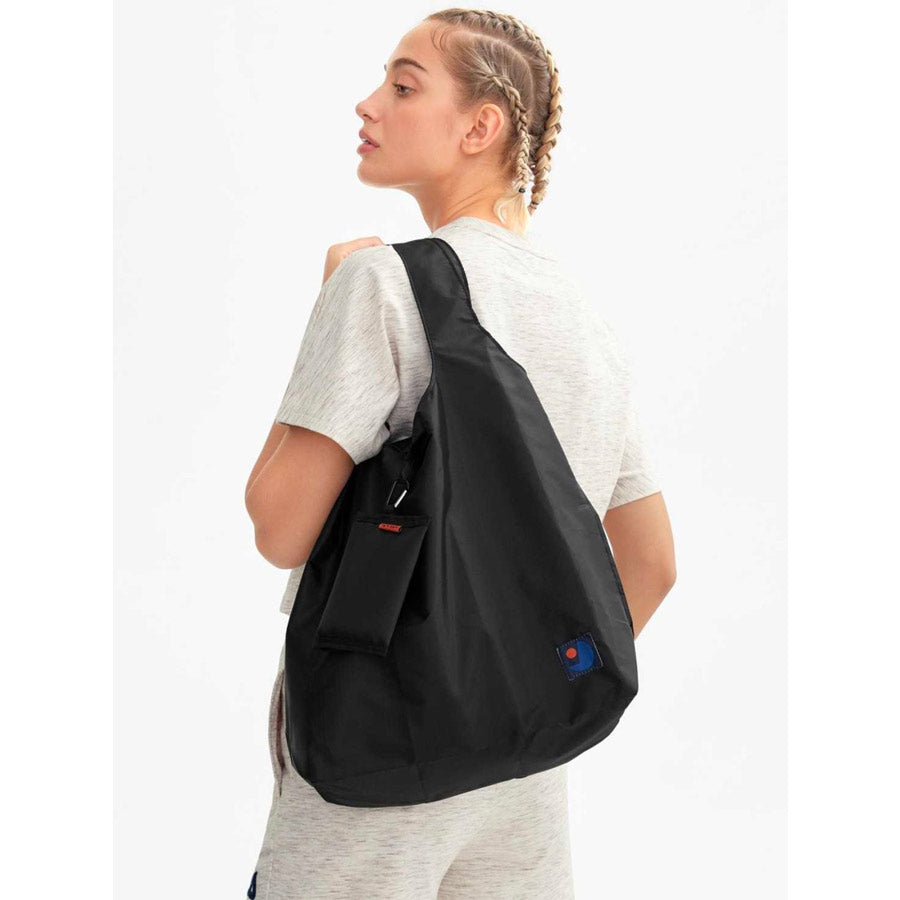 Le sac de course Choppy noir ultra pratique et stylé ! Pliez-le dans sa petite pochette de rangement munie d'un mousqueton et attachez-le au sac pour l'avoir toujours à portée de main !