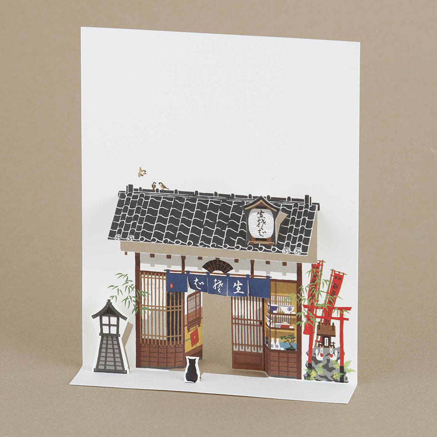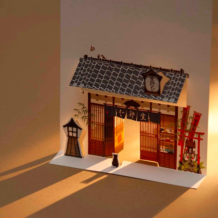 Composées d’un monde tridimensionnel japonais, qui se dévoile à l’ouverture, ces cartes pop-up, présentent ses rues préférées et bâtiments typiques de l'ancien Japon. Toutes ses créations ont été dessinées de ses mains et vous amènent à plonger dans un monde qui fourmille de détails à découvrir. Vous pouvez aligner différents bâtiments pour créer un paysage urbain. Ces cartes peuvent être envoyées et/ou encadrées pour en profiter.