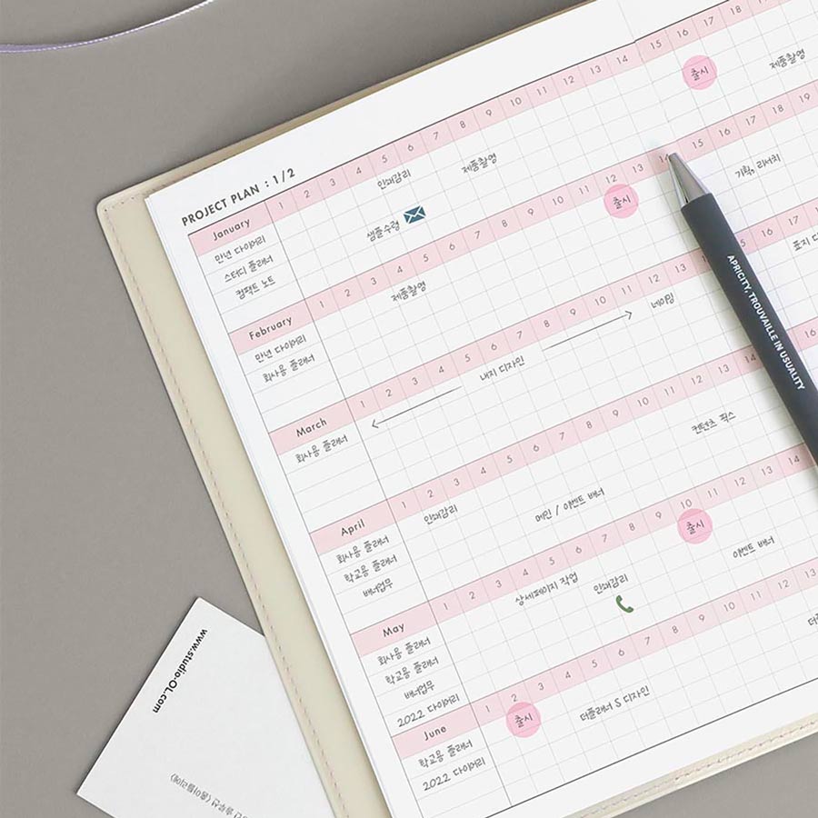 Fabriqué en Corée du Sud, ce planner reflète le sens du détail et de l’organisation propre aux papeteries coréennes.