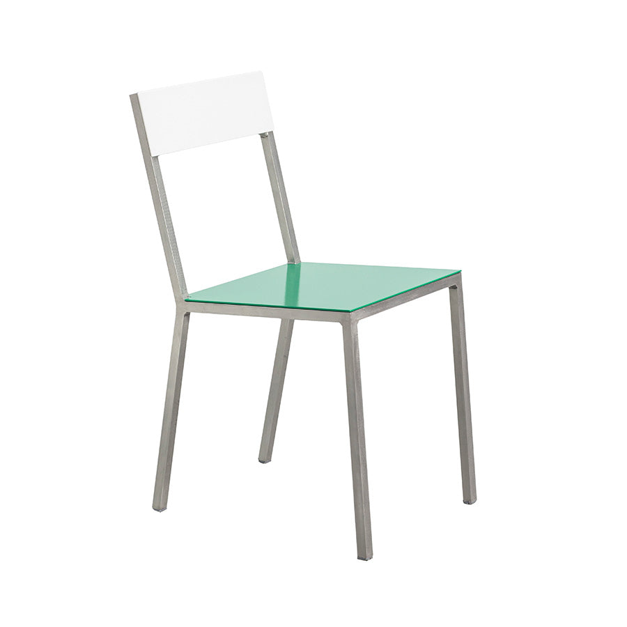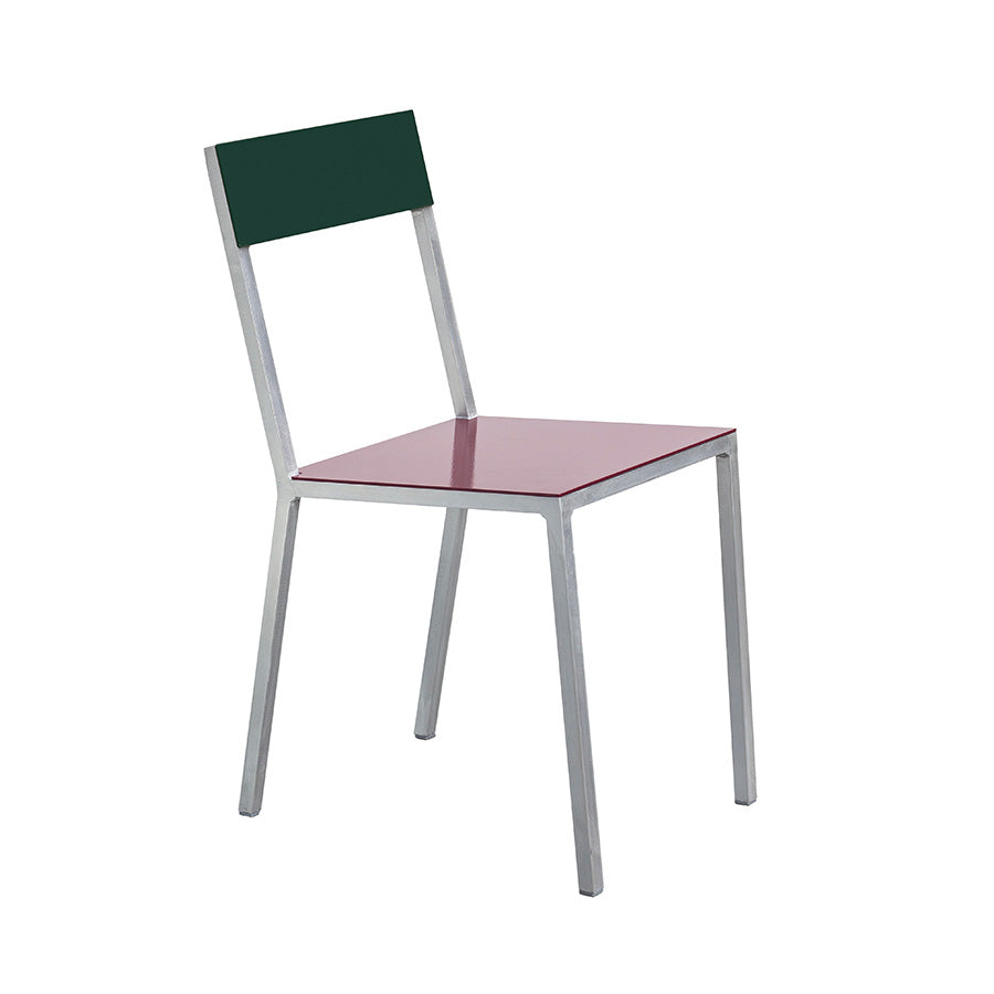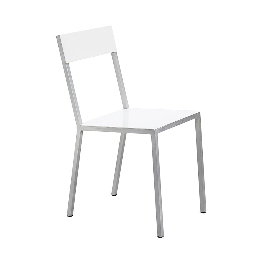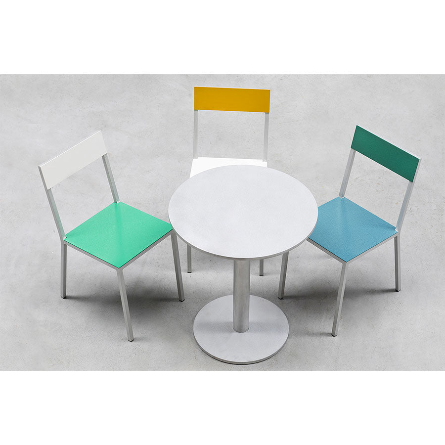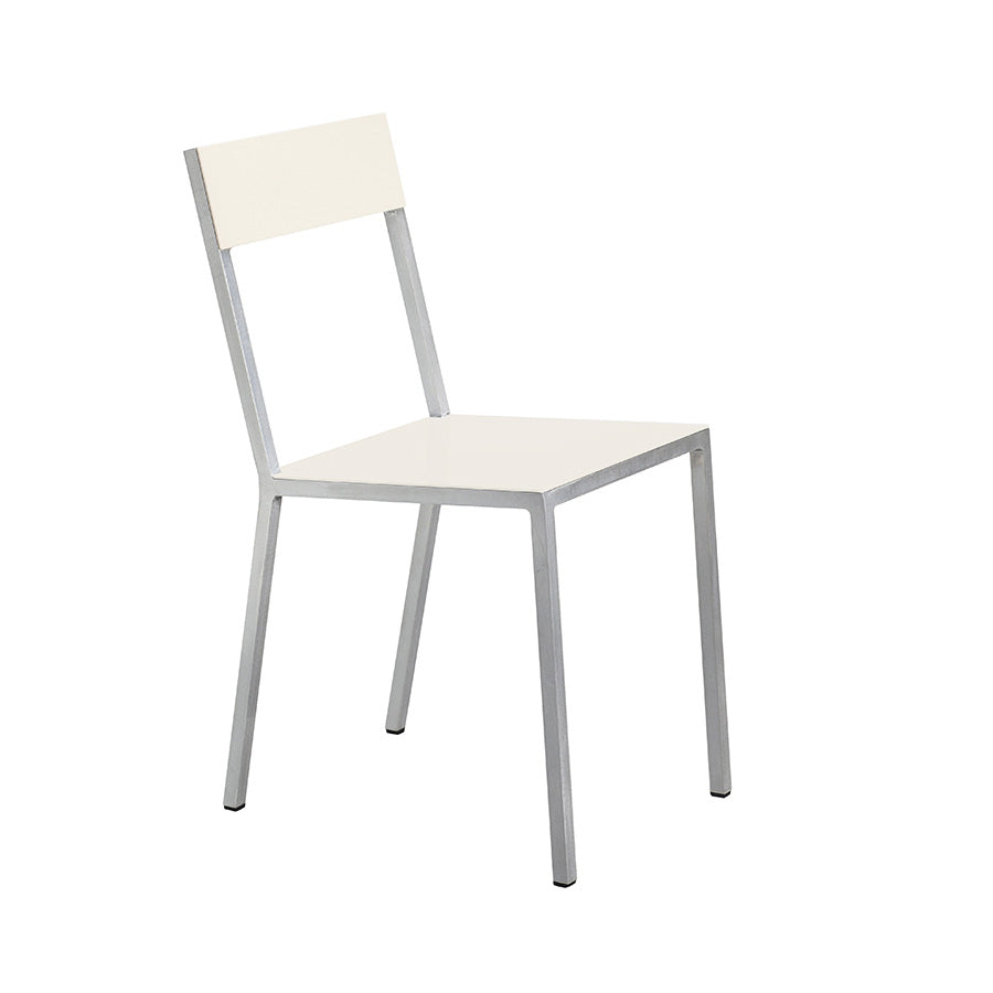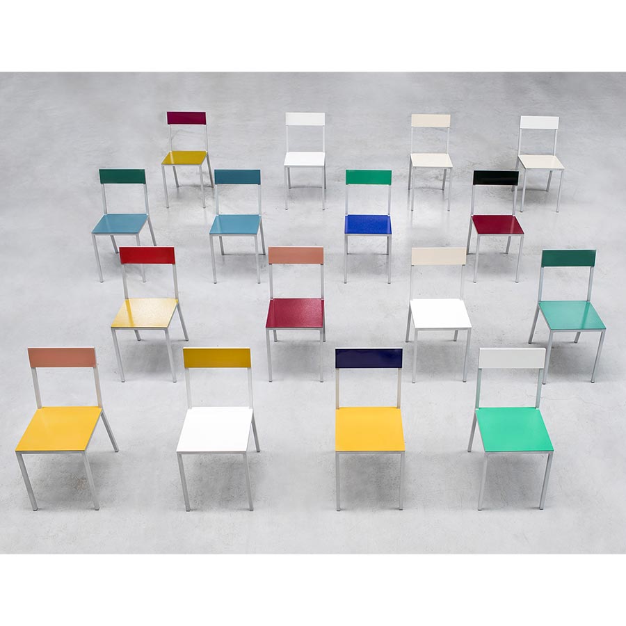 Imaginée par le couple créatif Fien Muller et Hannes Van Severen, la chaise Alu pour Valerie Objects se décline en 13 assemblages de couleurs différents. Cette chaise est conçue à partir de tube en aluminium de section carré de 20 mm x 20 mm et de 3 mm d'épaisseur. L'utilisation de l'aluminium en fait une chaise pouvant tout aussi bien être en extérieur qu'en intérieur. L'aluminium est traité afin de résister aux agressions du temps.