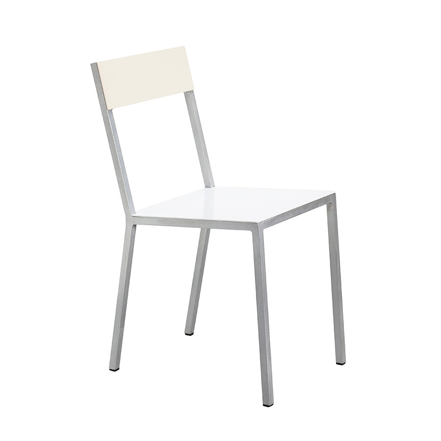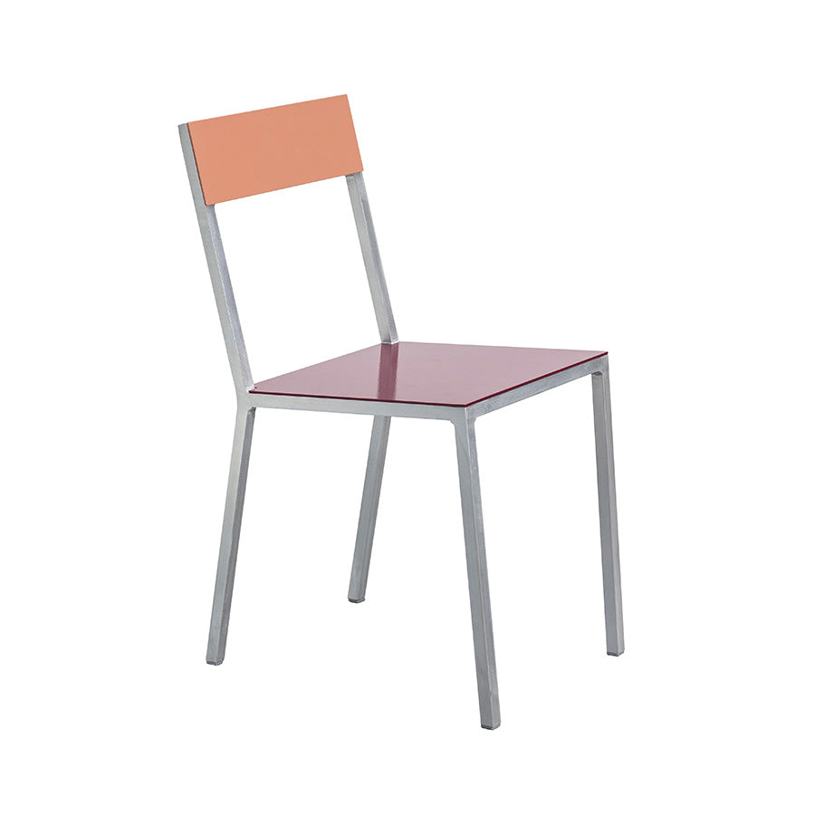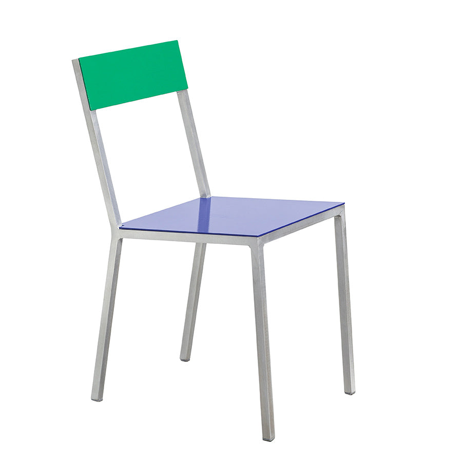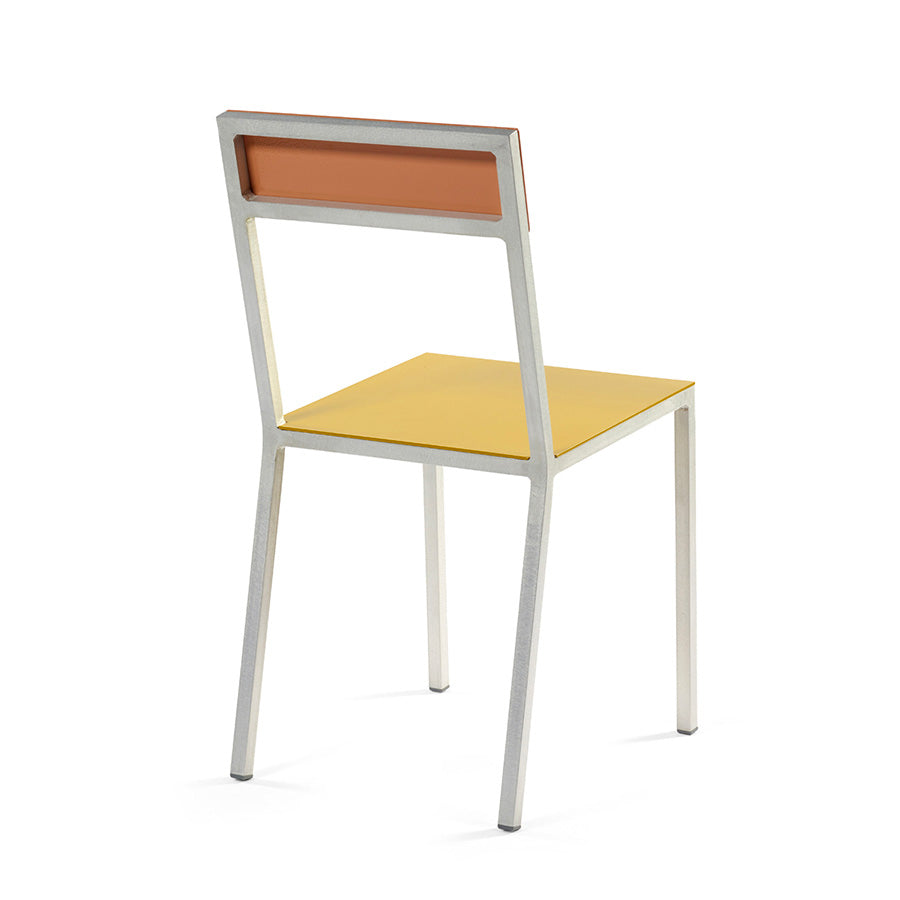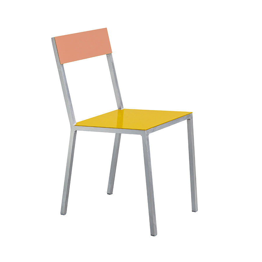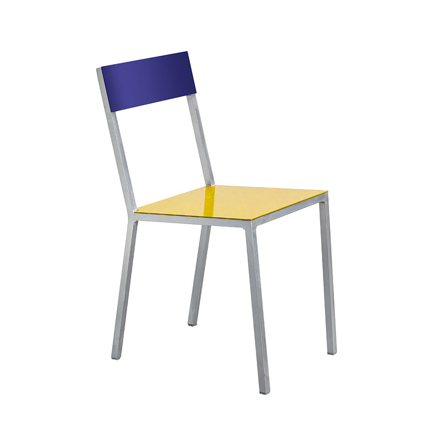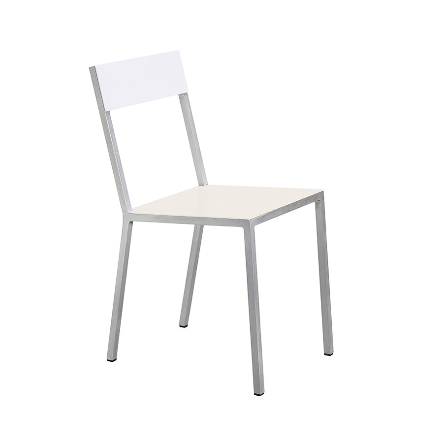 Imaginée par le couple créatif Fien Muller et Hannes Van Severen, la chaise Alu pour Valerie Objects se décline en 13 assemblages de couleurs différents. Cette chaise est conçue à partir de tube en aluminium de section carré de 20 mm x 20 mm et de 3 mm d'épaisseur. L'utilisation de l'aluminium en fait une chaise pouvant tout aussi bien être en extérieur qu'en intérieur. L'aluminium est traité afin de résister aux agressions du temps.