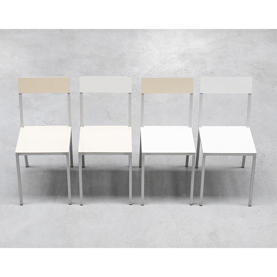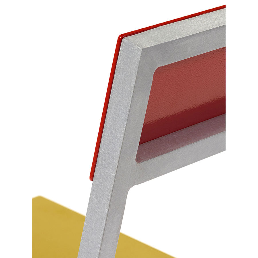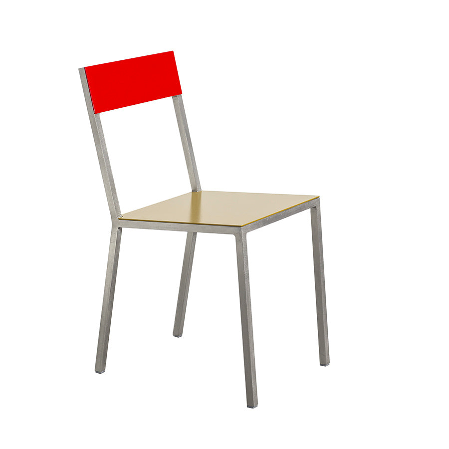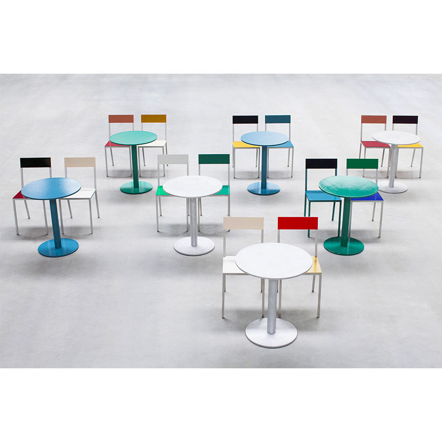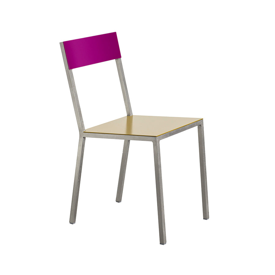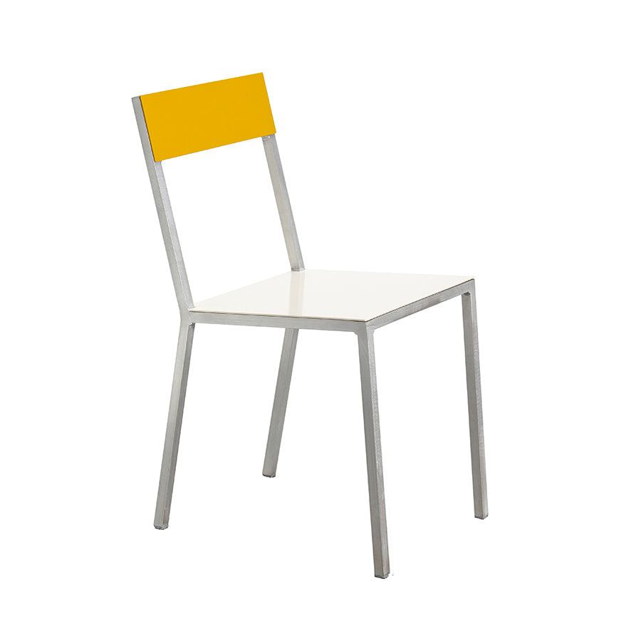 Imaginée par le couple créatif Fien Muller et Hannes Van Severen, la chaise Alu pour Valerie Objects se décline en 13 assemblages de couleurs différents. Cette chaise est conçue à partir de tube en aluminium de section carré de 20 mm x 20 mm et de 3 mm d'épaisseur. L'utilisation de l'aluminium en fait une chaise pouvant tout aussi bien être en extérieur qu'en intérieur. L'aluminium est traité afin de résister aux agressions du temps.