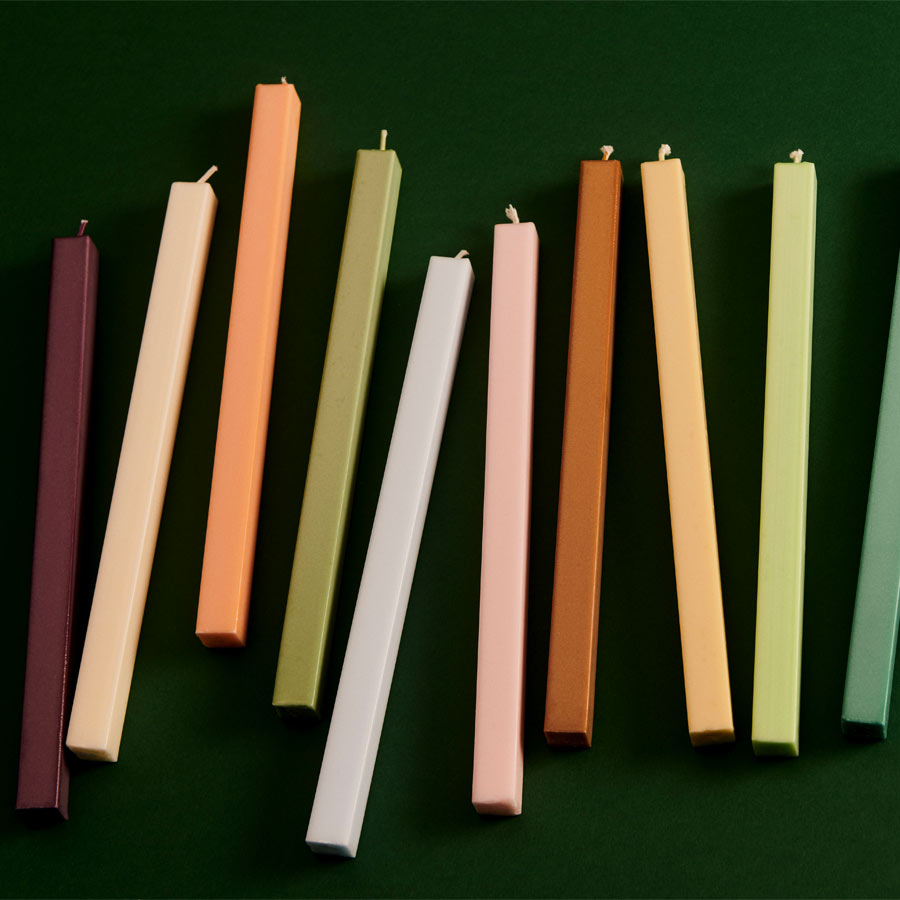 Découvrez aussi le set de 4 bougies carrées vert et blanc.