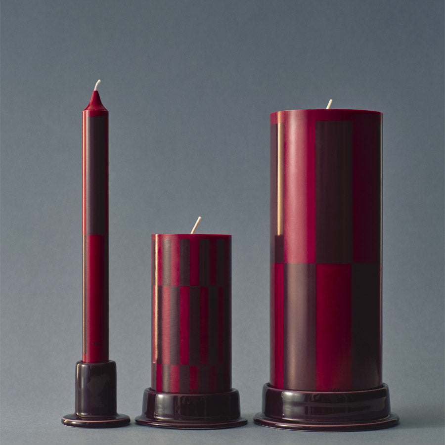 HAY mise sur le motif avec ce set de bougies pattern bleu et bordeaux.