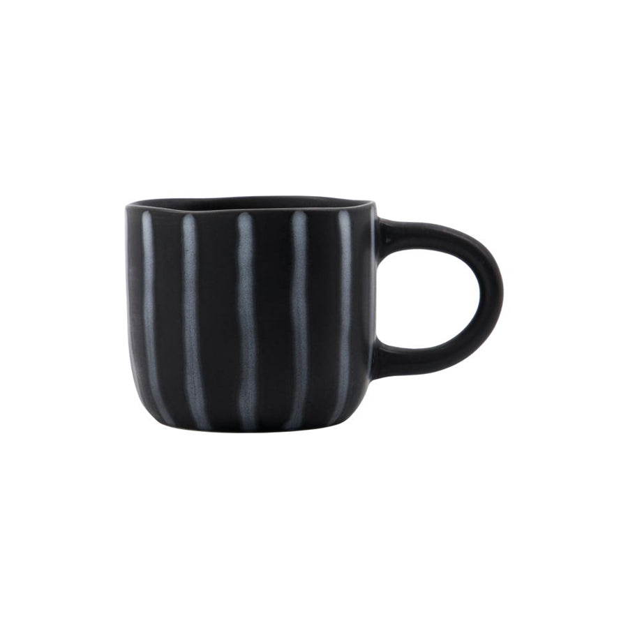 La tasse noire avec des lignes blanches de chez Housse Doctor. Cette tasse en grès est parfaite pour boire votre thé ou votre café. Son design épuré vous permettra de boire vos boissons chaudes préférées avec style. Sa grande anse permet de bien l'avoir en main.