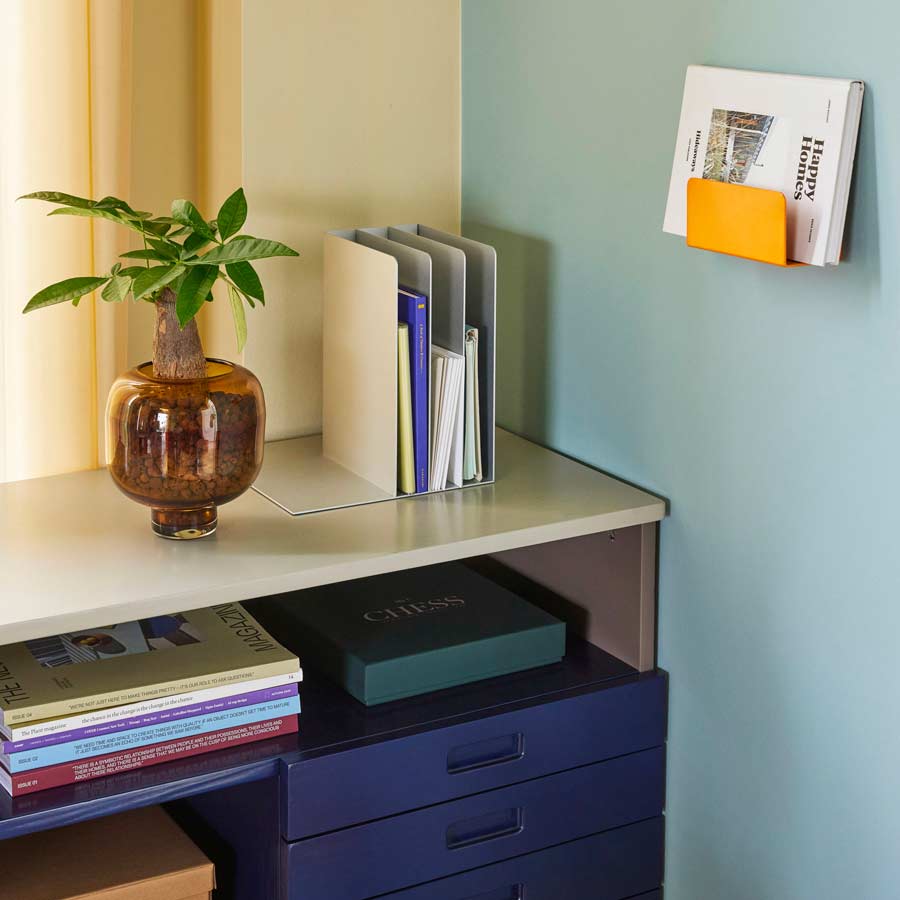 Cet organisateur de bureau gris de chez Hubsch possède une structure en file, offrant une visibilité facile de son contenu. Cela vous permettra d'avoir un espace de travail organisé, en plus de l'accès rapide à vos documents de bureau. Sa couleur grise métallique s'intègrera parfaitement à n'importe quel décor de bureau.