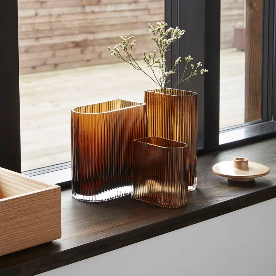 Découvrez ce vase élément ambre de la marque danoise Hubsch ! Fabriqué en verre soufflé à la bouche, celui-ci possède une forme originale en arche. Sa finition cannelée lui confère un style unique.