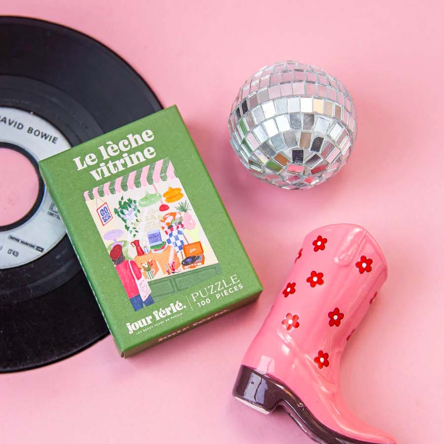 Le mini puzzle Le lèche-vitrine, c’est le genre de pause qui redonne instantanément le sourire. 100 pièces biosourcées à assembler, un format ultra compact à glisser dans n’importe quel sac, et une illustration tellement mignonne qu’on a envie de s’y attarder. On le commence dans le train, on continue au café… et on savoure ce mini moment rien que pour soi.
