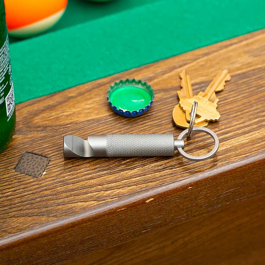 Grâce à son format compact avec anneau porte-clés, ce décapsuleur portable s’accroche facilement à votre trousseau de clés pour être toujours à portée de main.