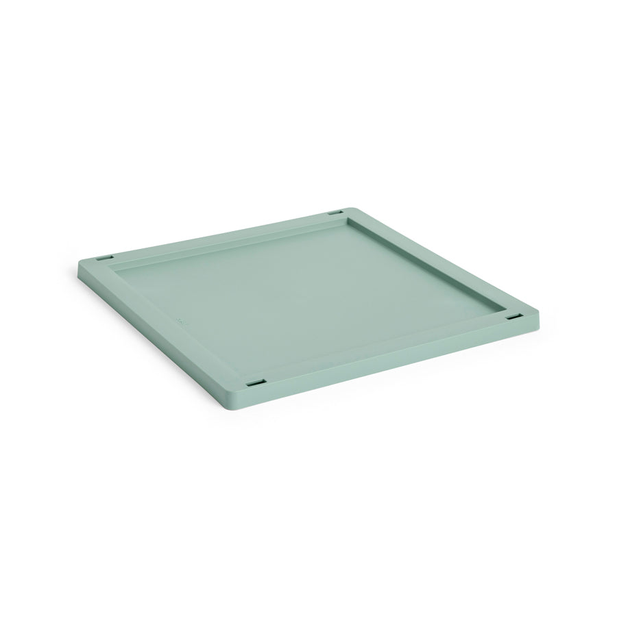 Le couvercle vert sauge de la marque danoise HAY est conçu spécialement pour s'adapter à la cagette cube mais aussi à la cagette carrée M de la collection Colour Crate. Il transforme votre cagette en véritable boîte de rangement fermée , tout en conservant le look ajouré et moderne qui fait le succès de la gamme.