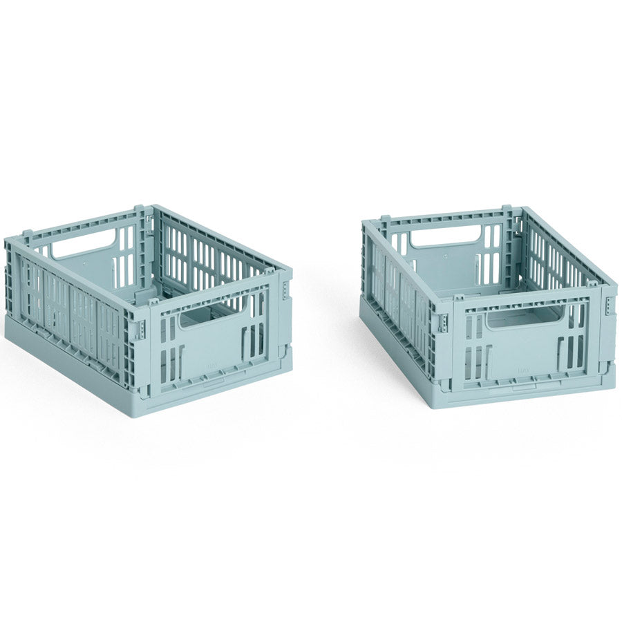 Le set de 2 mini cagettes bleu dusty de la marque danoise HAY est l’allié parfait pour organiser les petits objets du quotidien avec style et efficacité.
