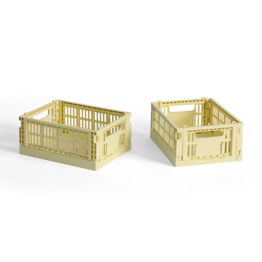 Le set de 2 mini cagettes jaune clair de la marque danoise HAY est l’allié parfait pour organiser les petits objets du quotidien avec style et efficacité.