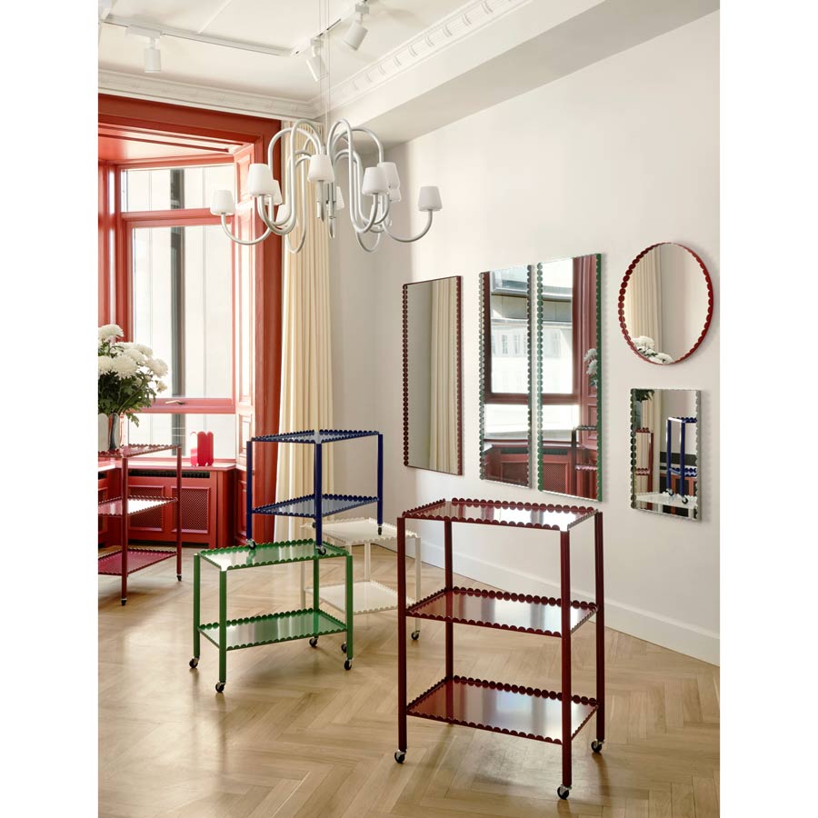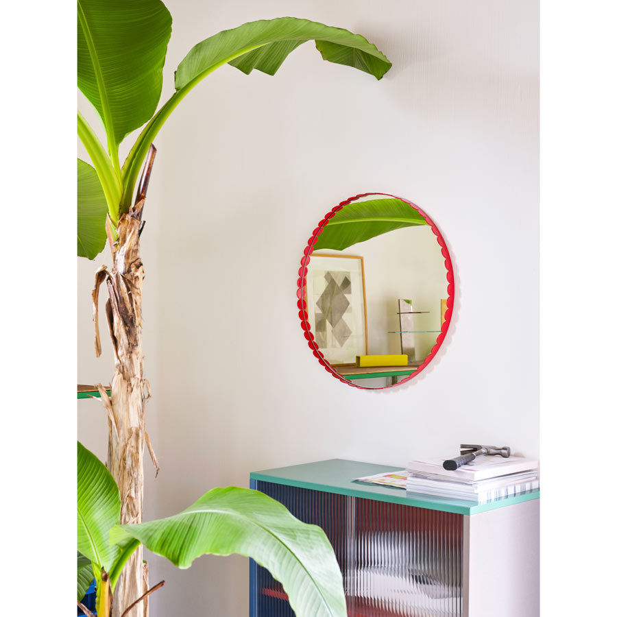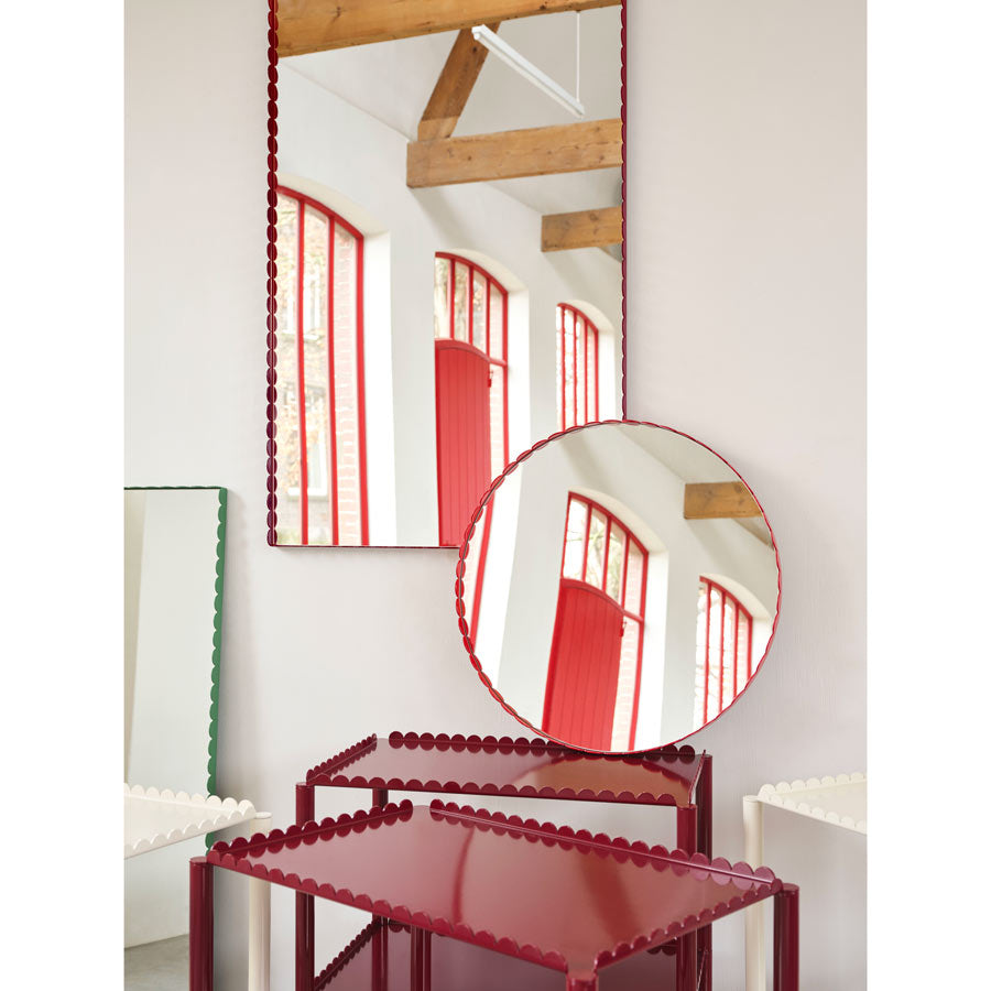 Ce miroir avec son bord festonné apporte une touche design et intemporel à votre intérieur. Ces miroirs font partie de la collection Arcs que les designers Muller Van Severen ont conçue pour Hay. Dans cette collection, on retrouve également les chandeliers Arcs, les vases, les dessertes et les lampes.
