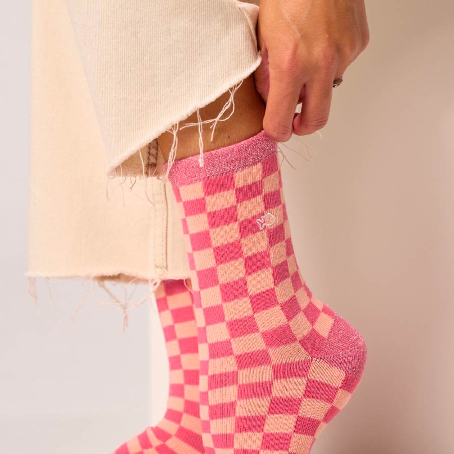 Chaussettes à carreaux saumon et rose