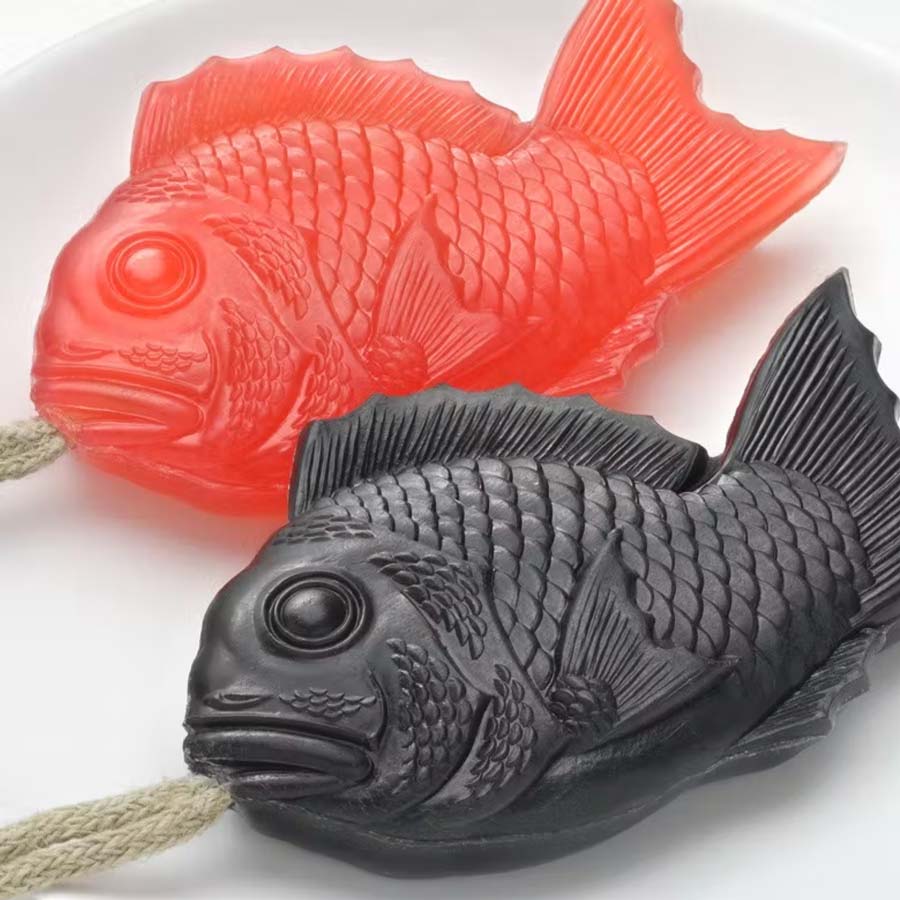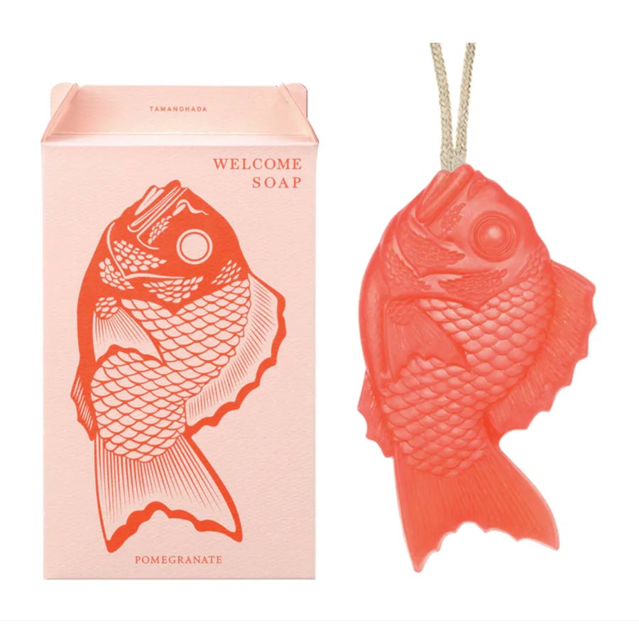 Ce savon à la forme de poisson rouge est inspiré du poisson Taiseken (la daurade), symbole de bienvenue au Japon et est associé à la bonne fortune. Il vient d'une des plus anciennes savonneries de grande qualité : Tamanohada Soap Co au Japon. Sa forme délicate a été créée en utilisant un procédé basé sur le moule en bois, traditionnellement utilisé pour fabriquer des bonbons japonais.
