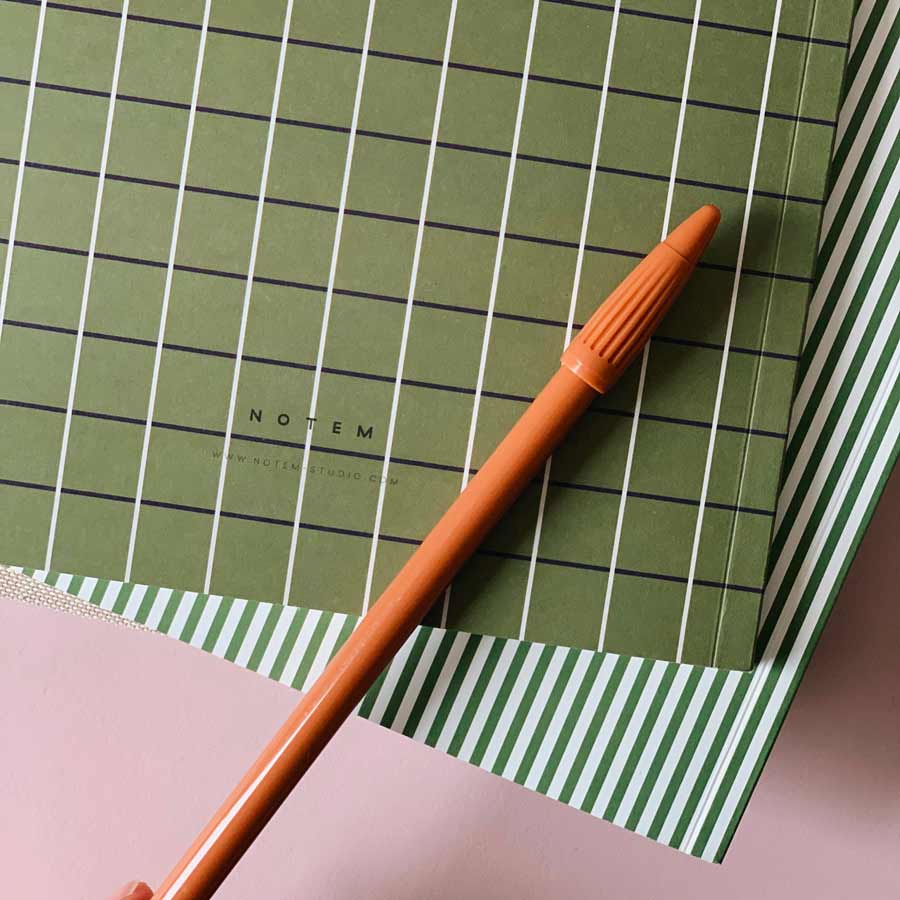Ce carnet Vita à la jolie couverture quadrillée vert, est composé de pages lignées. Le sujet du jour est indiqué en haut de chaque page. Idéal pour noter toutes vos notes, listes, idées créatives, etc. La marque scandinave Notem présente ce cahier de notes avec une couverture souple et légère. Vous ne manquerez pas d'espace, car ce carnet possède 80 pages.