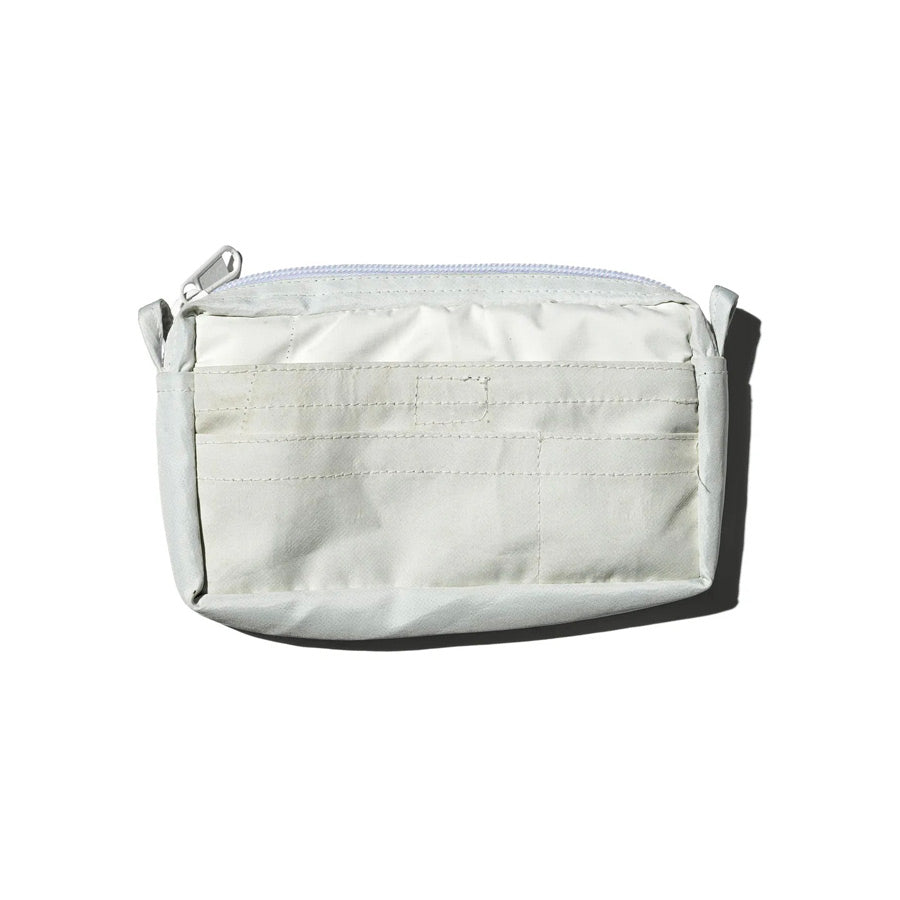 Originale et pleine de caractère, cette pochette en tissu recyclé de la marque Puebco est fabriquée à partir de vestes de ski. Chaque pièce est transformée pour créer une pochette unique, avec variations de teintes, ses textures et ses détails propres.