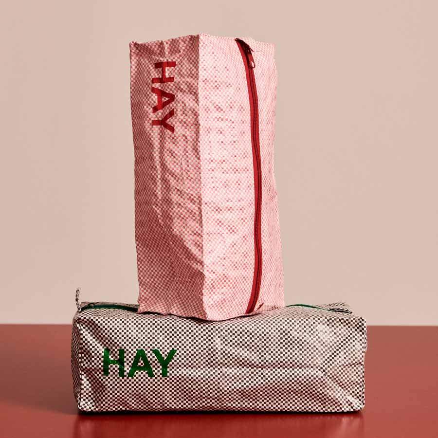 On aime son look graphique, relevé par une fermeture zippée contrastée et un logo HAY bien visible. Mais le vrai plus, c’est son format rectangulaire super fonctionnel qui se glisse facilement dans une valise ou un sac.