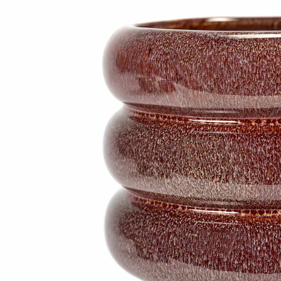Ce pot de fleurs fabriqué en faïence fait partie de la collection Sixties de chez Serax. Il se démarque par sa forme organique, son aspect moucheté et sa couleur rouge aubergine. Il saura mettre en valeur vos plantes et vos fleurs et apportera une touche de couleur à votre maison. Disponible dans deux tailles et existe également en vert.