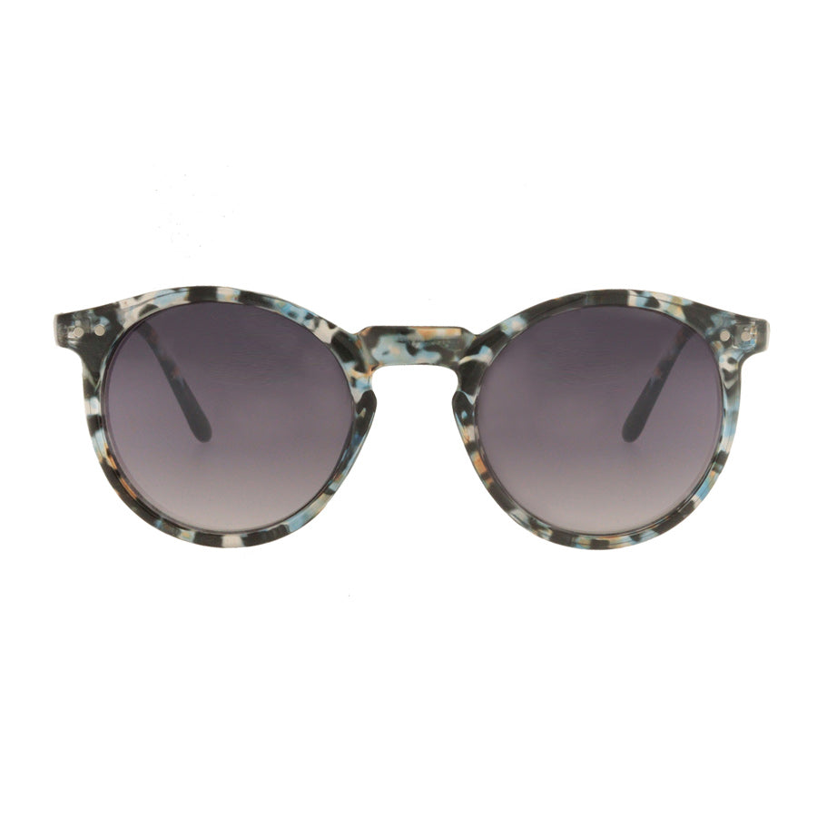 Un classique revisité avec une touche arty : le modèle Charly en version Myrtille joue sur les contrastes entre forme intemporelle et imprimé audacieux. Toujours aussi flatteuse grâce à sa monture ronde légèrement étirée, cette paire solaire séduit ici par un mélange d’écailles bleues, brunes, orangées et noires qui lui donnent un caractère unique… sans jamais être difficile à porter.