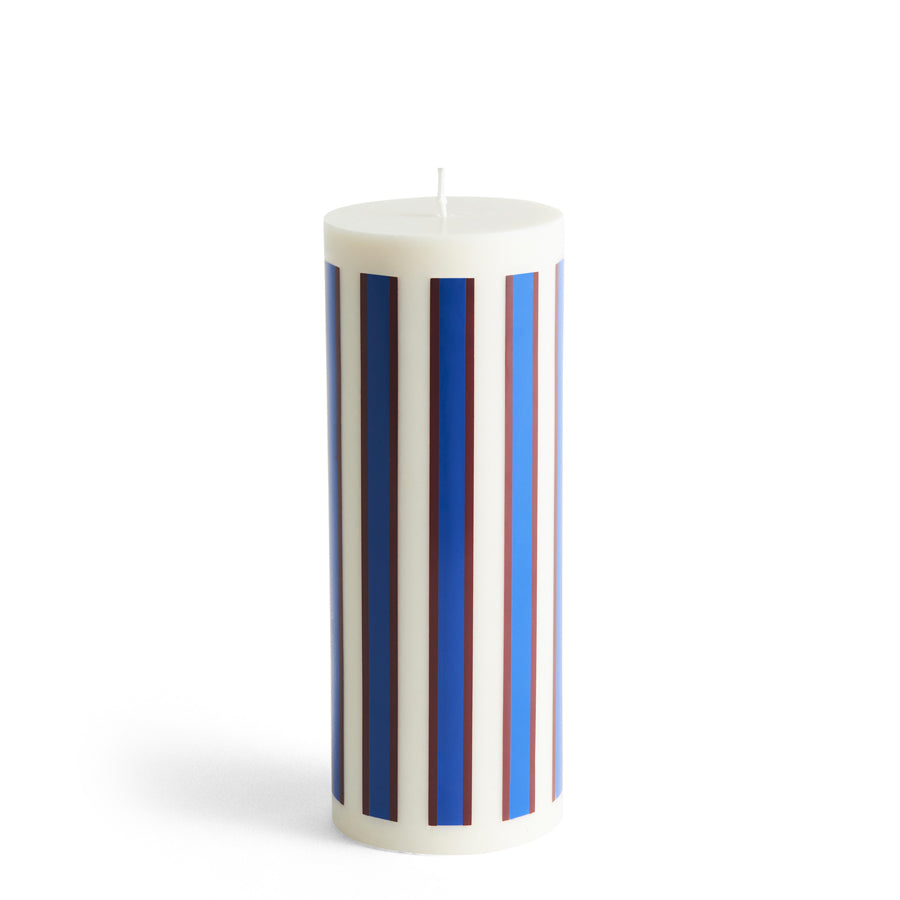 La bougie Column taille L, blanc, marron et bleu de chez Hay. Avec sa forme simple et ses graphismes colorés, cette bougie apporte une touche design à votre intérieur. De grand diamètre, cette bougie colonne est certifiée par l'Ecolabel Nordic Swan. Cette bougie convient pour le Bougeoir Column taille L.